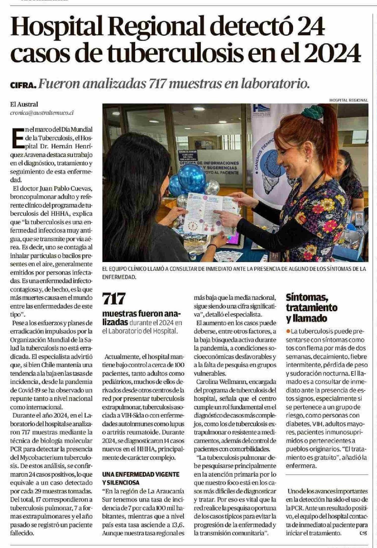 Hospital Regional detectó 24 casos de tuberculosis en el 2024