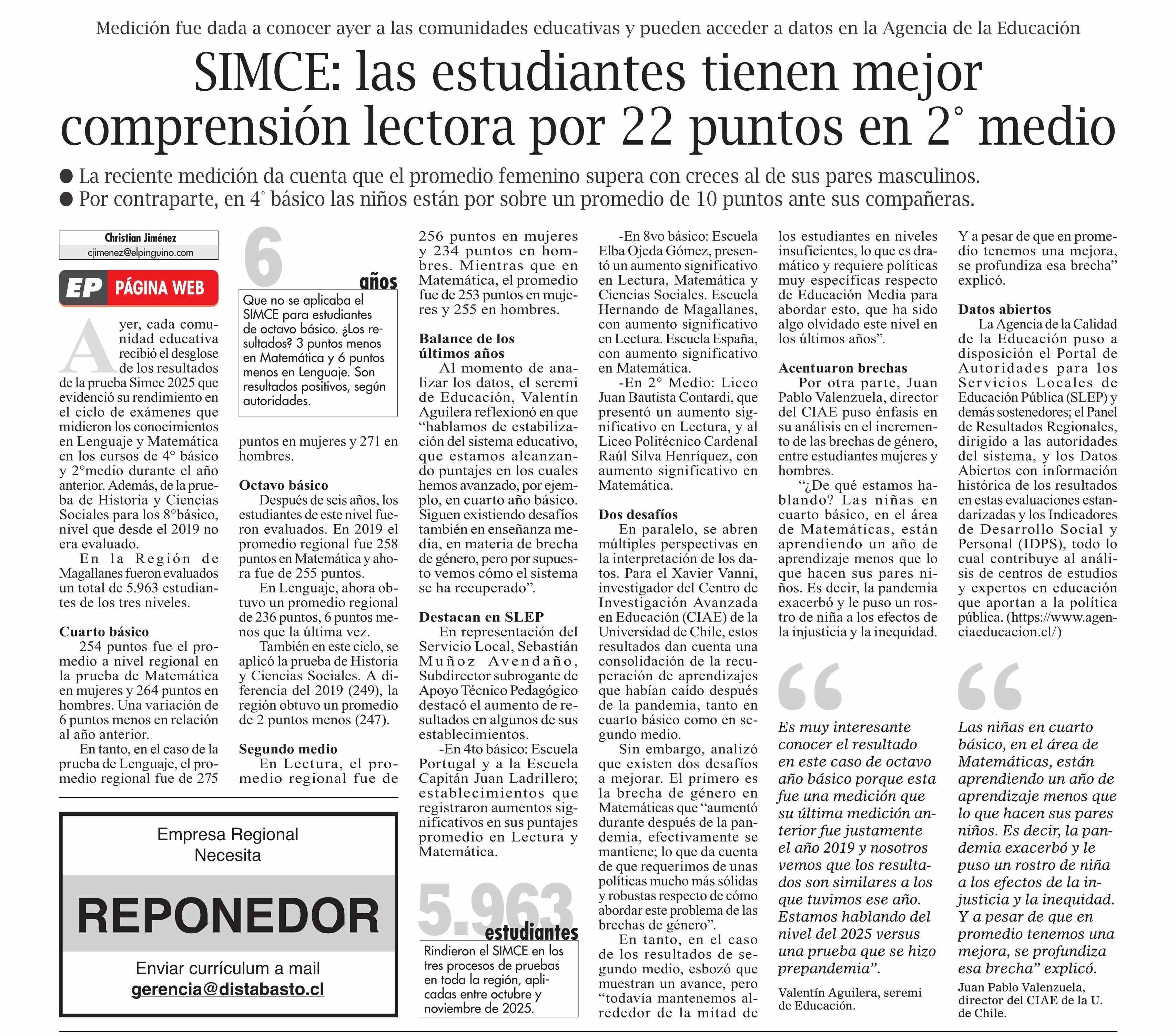 Título: SIMCE: las estudiantes tienen mejor comprensión lectora por 22 puntos en 2° medio