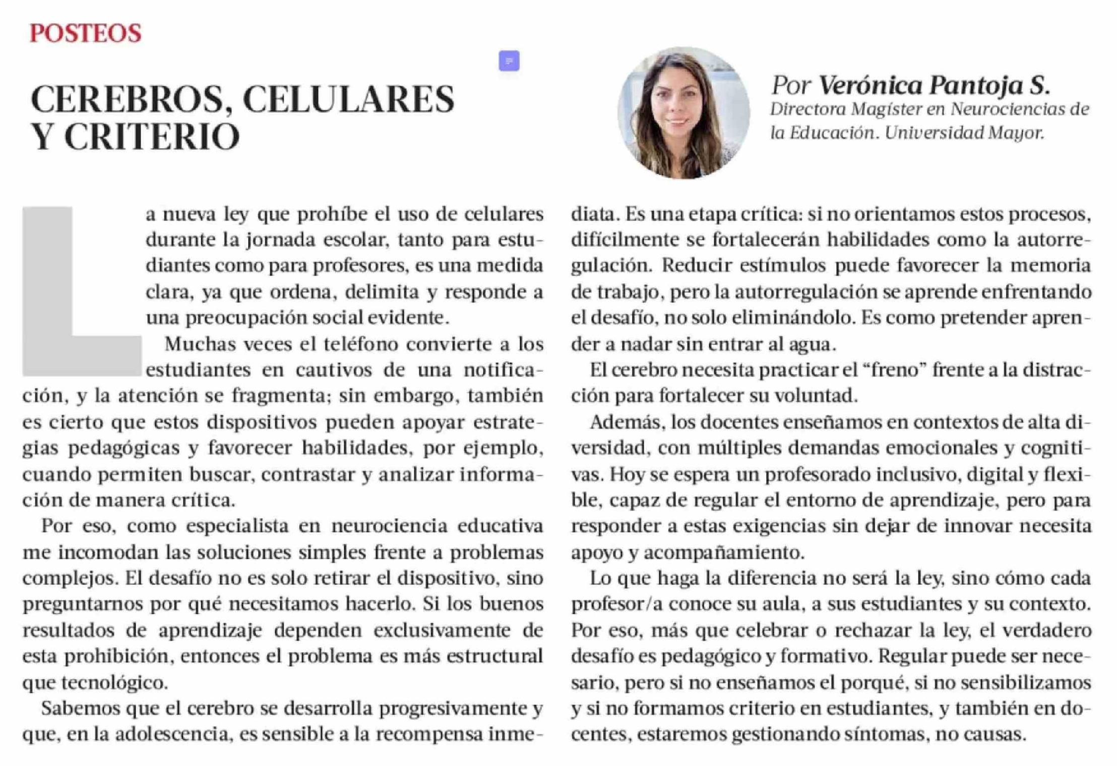 Columnas de Opinión: CEREBROS, CELULARES Y CRITERIO