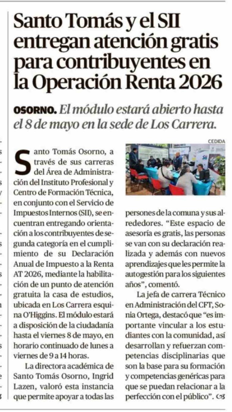Santo Tomás y el SII entregan atención gratis para contribuyentes en la Operación Renta 2026