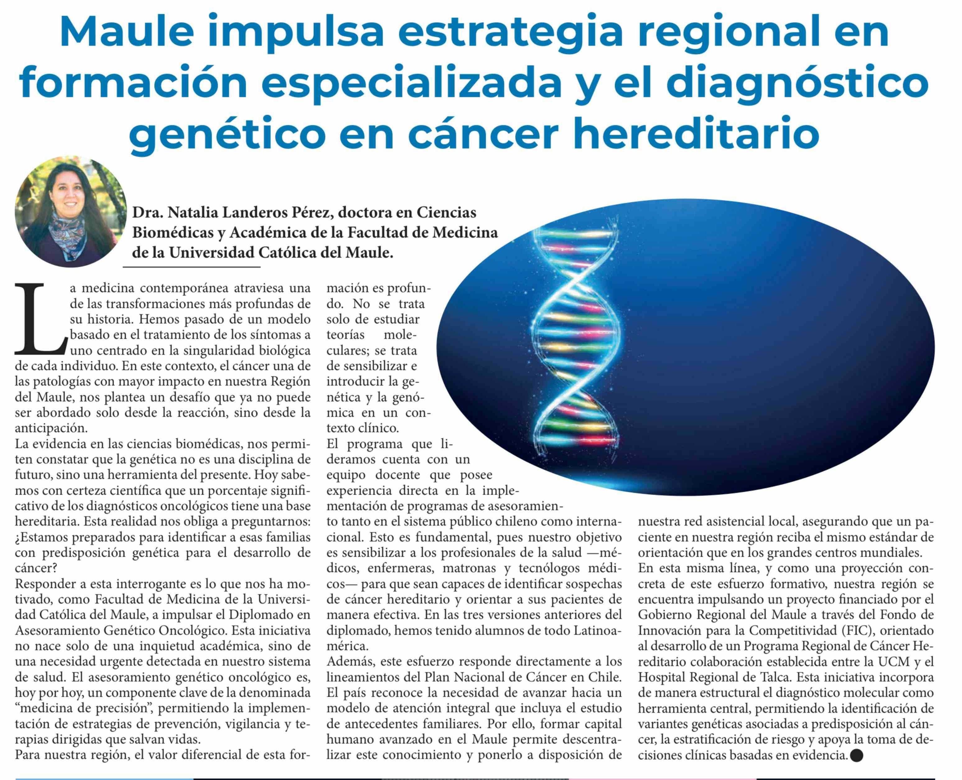 Título: Maule impulsa estrategia regional en formación especializada y el diagnóstico genético en cáncer hereditario