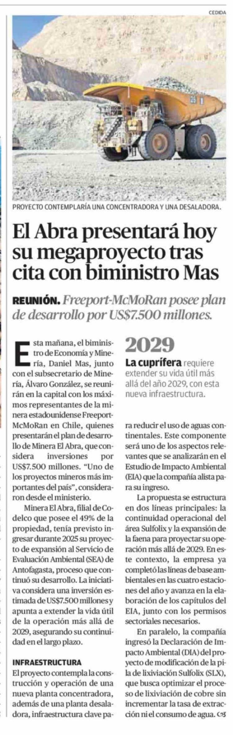 Título: El Abra presentará hoy su megaproyecto tras cita con biministro Mas