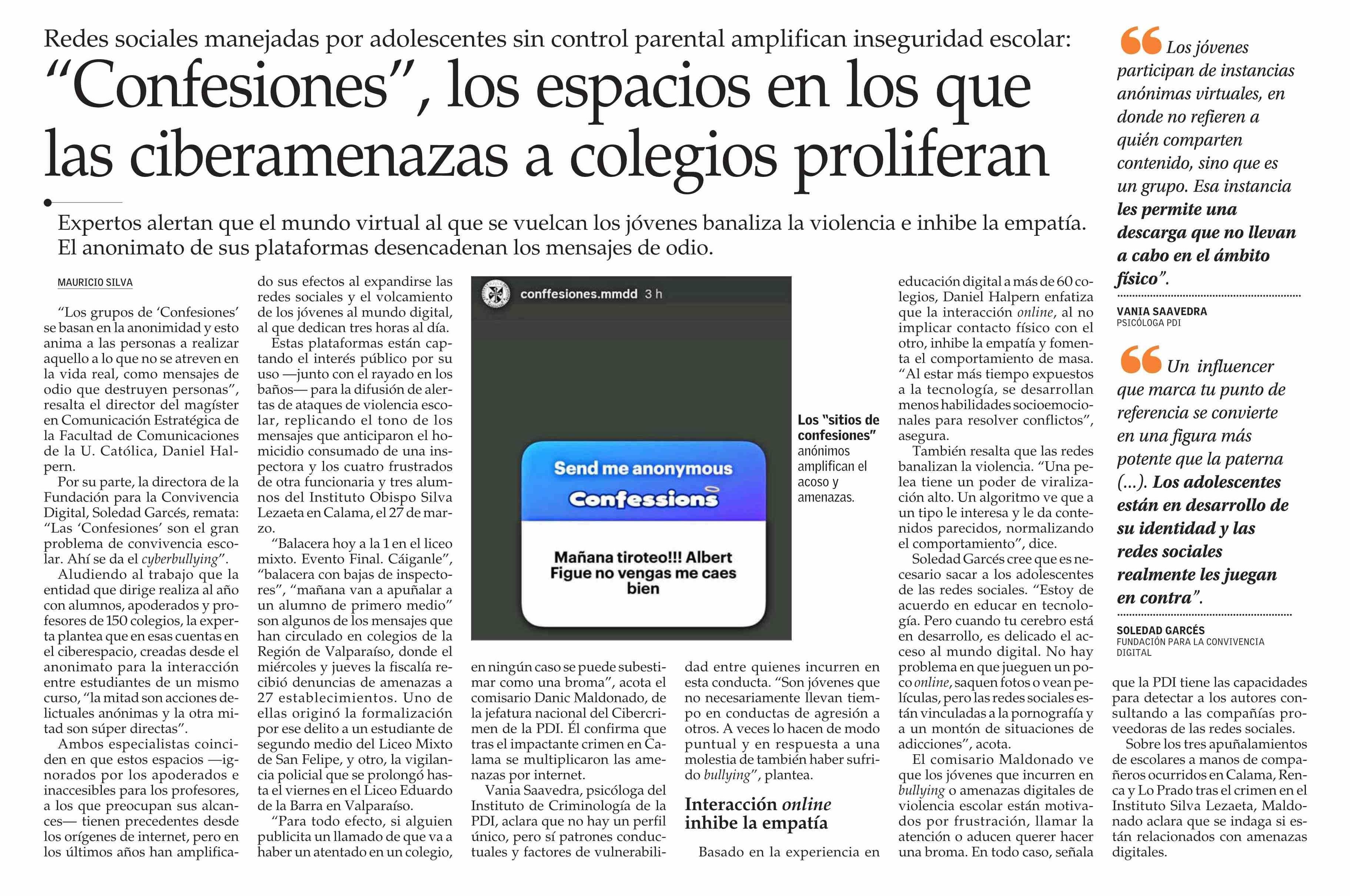 Título: “Confesiones”, los espacios en los que las ciberamenazas a colegios proliferan