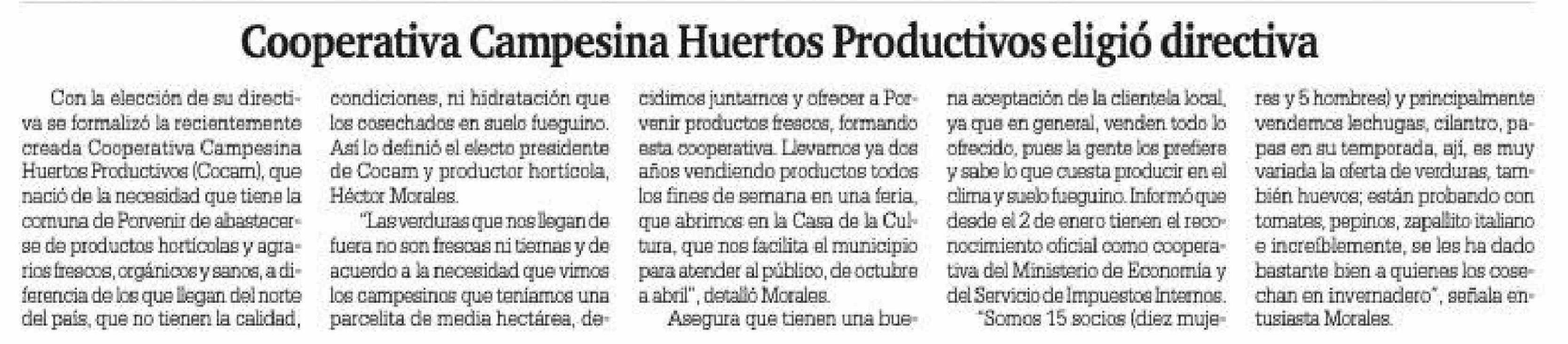 Cooperativa Campesina Huertos Productivos eligió directiva
