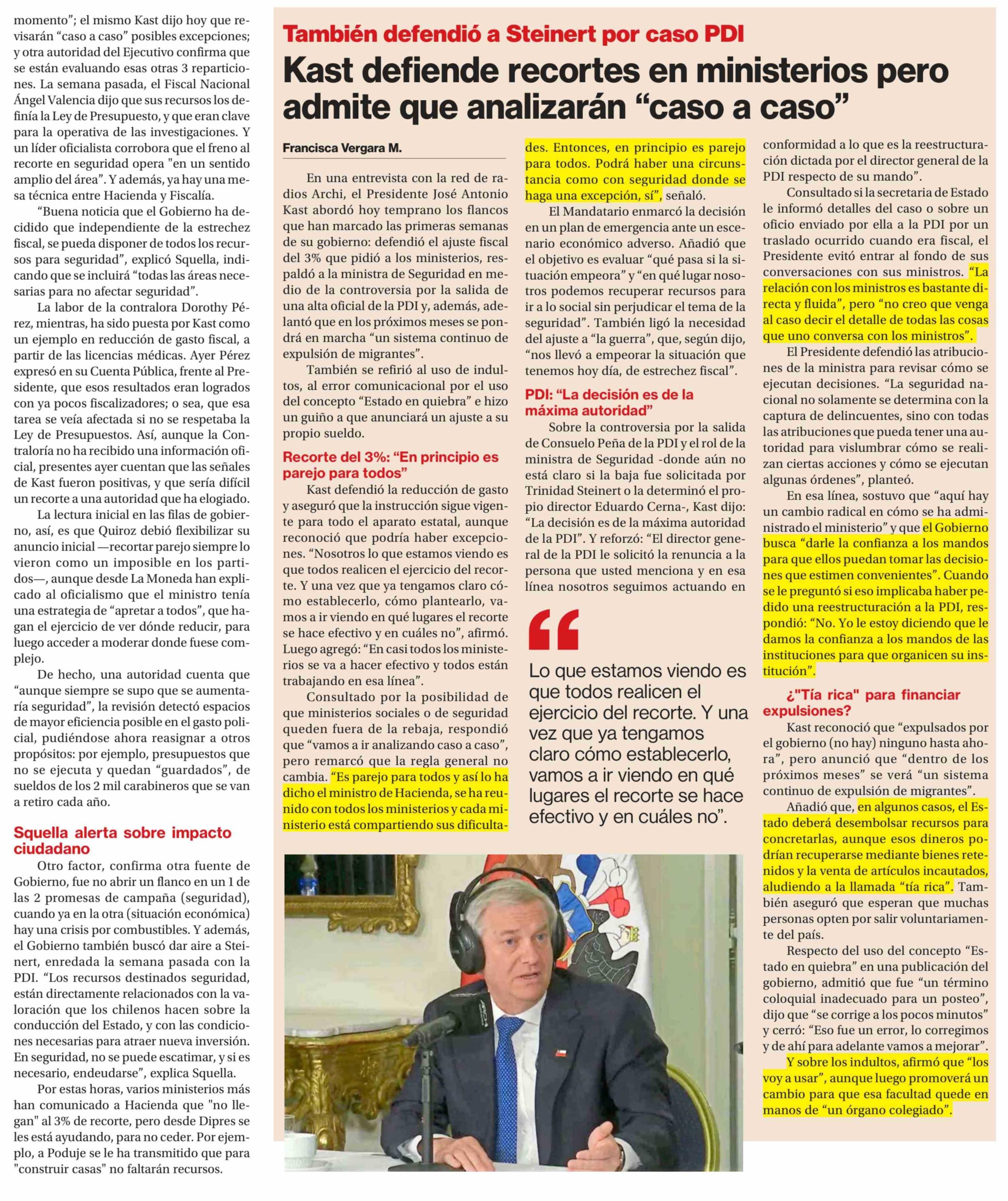 Kast baja intensidad a recorte del 3%: Evalúa exceptuar a Educación, Contraloría y Fiscalía