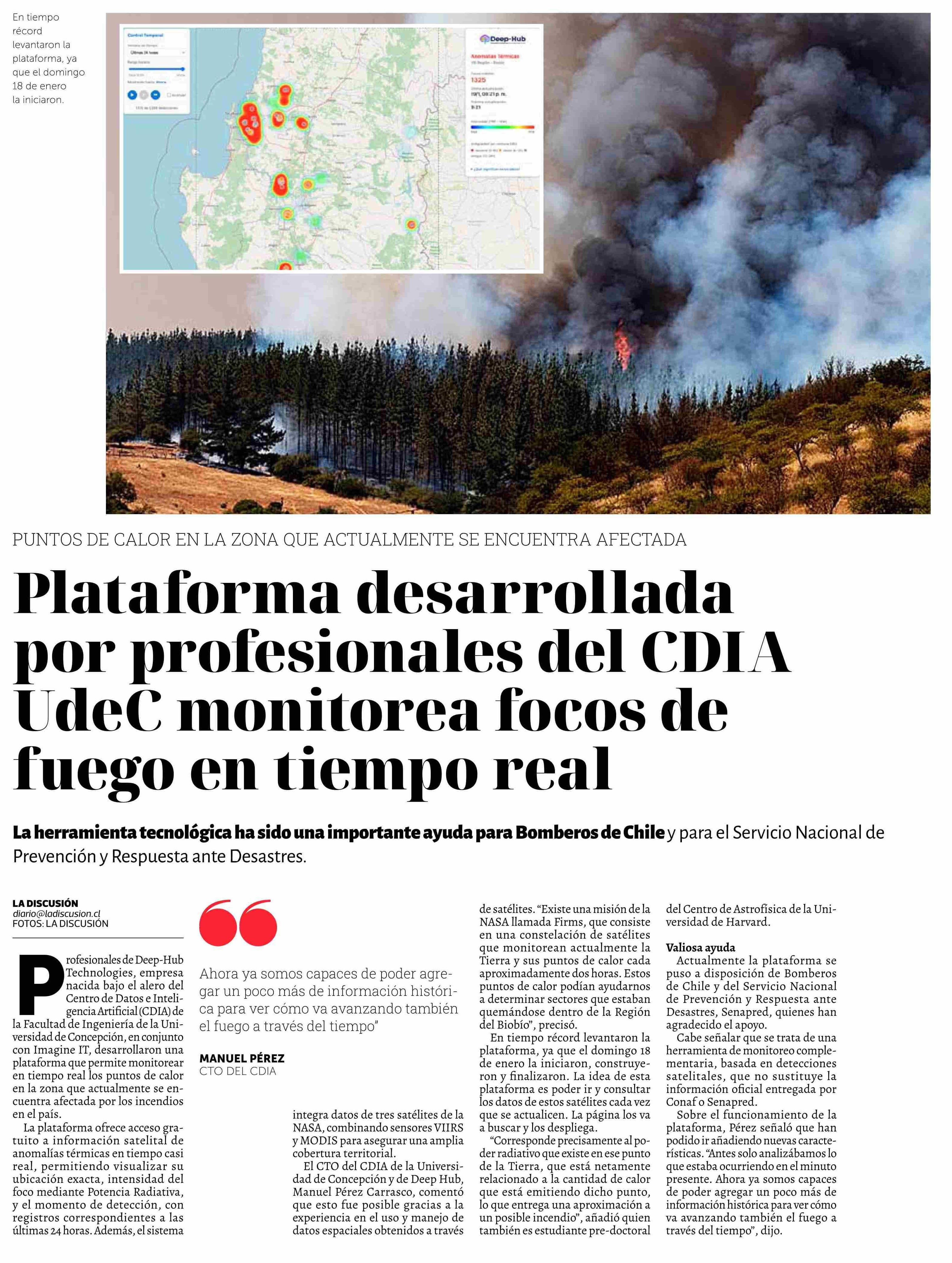 Plataforma desarrollada por profesionales del CDIA UdeC monitorea focos de fuego en tiempo real