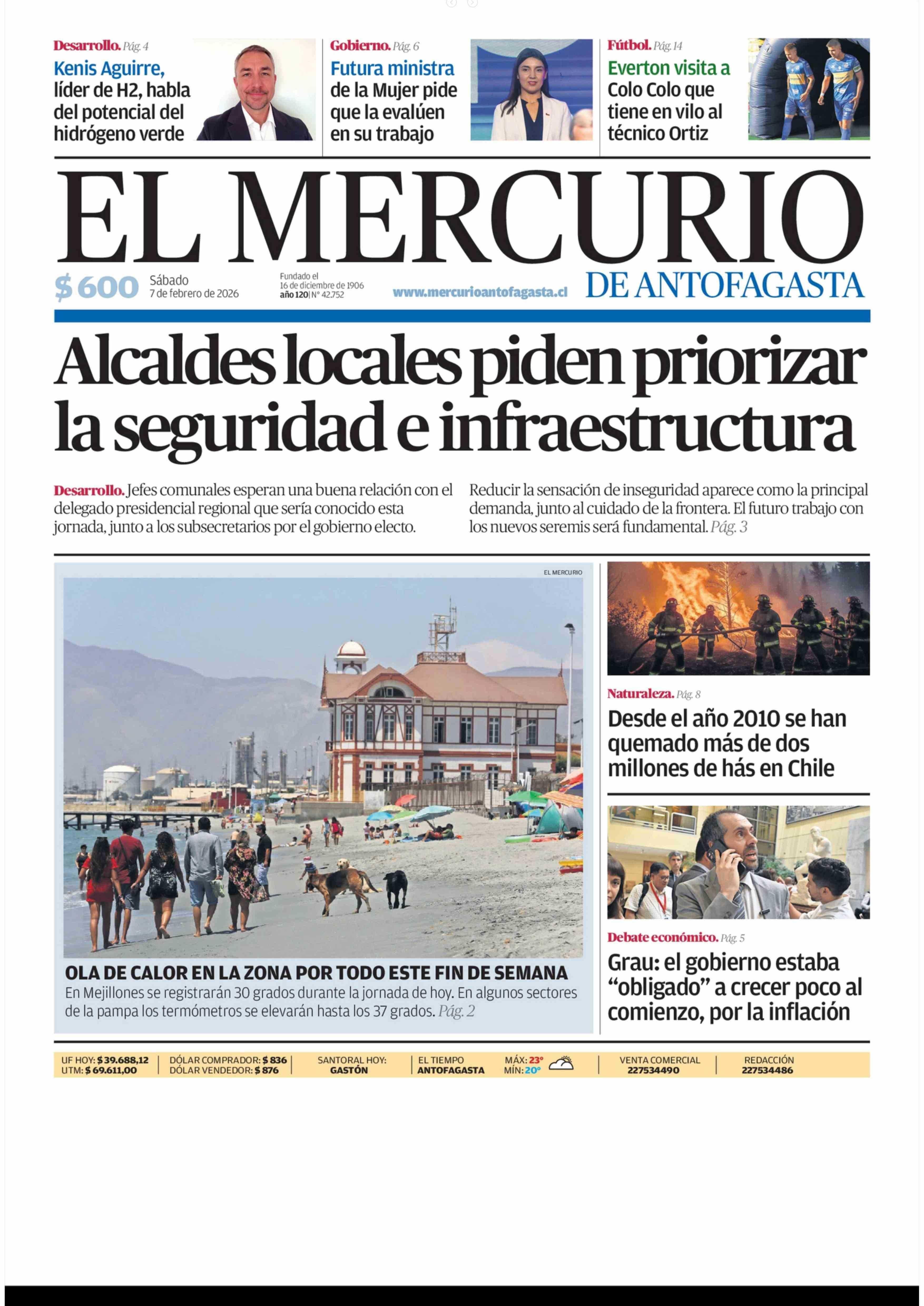 PORTADA EL MERCURIO DE ANTOFAGASTA CHILE