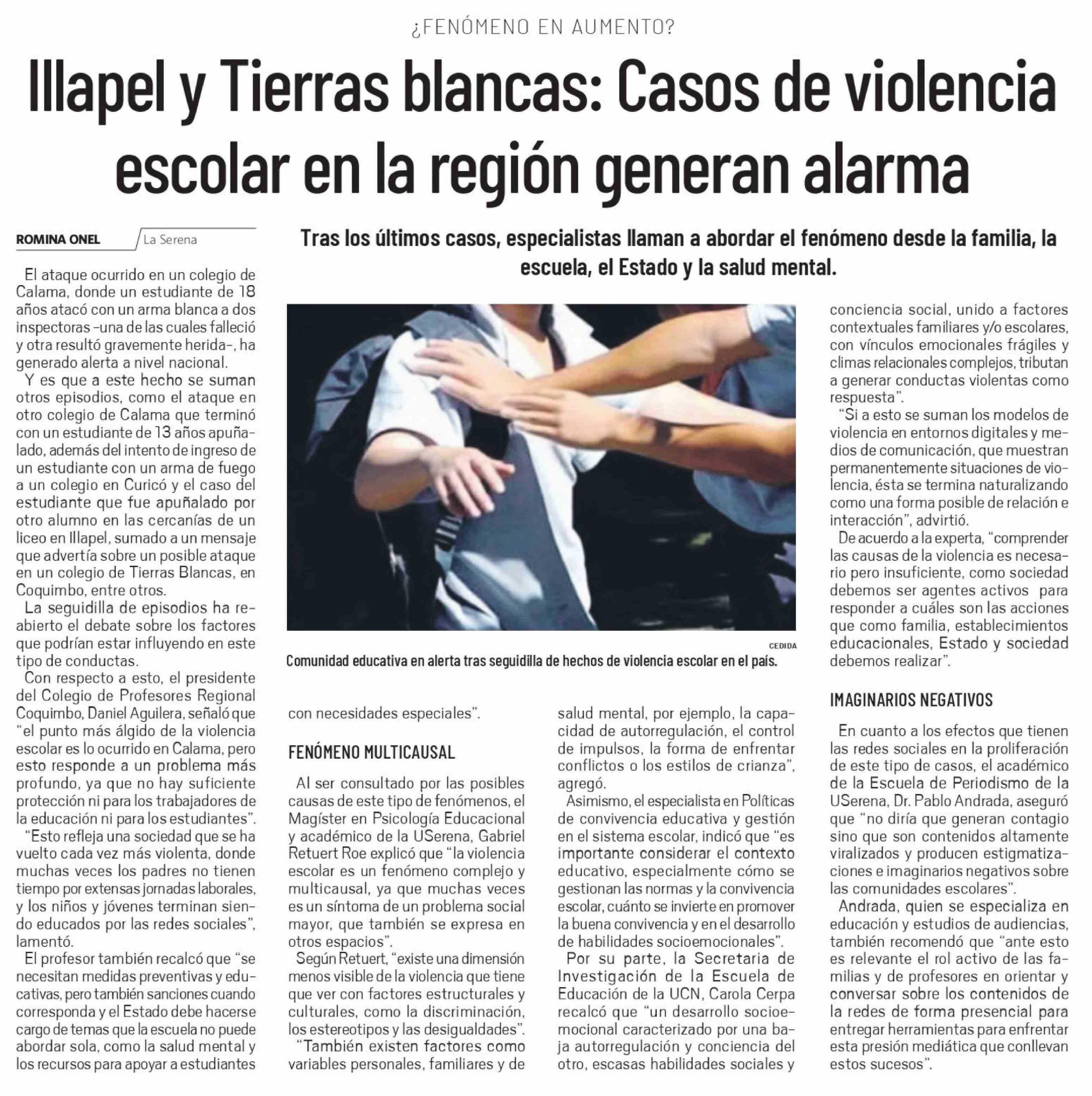 Illapel y Tierras blancas: Casos de violencia escolar en la región generan alarma
