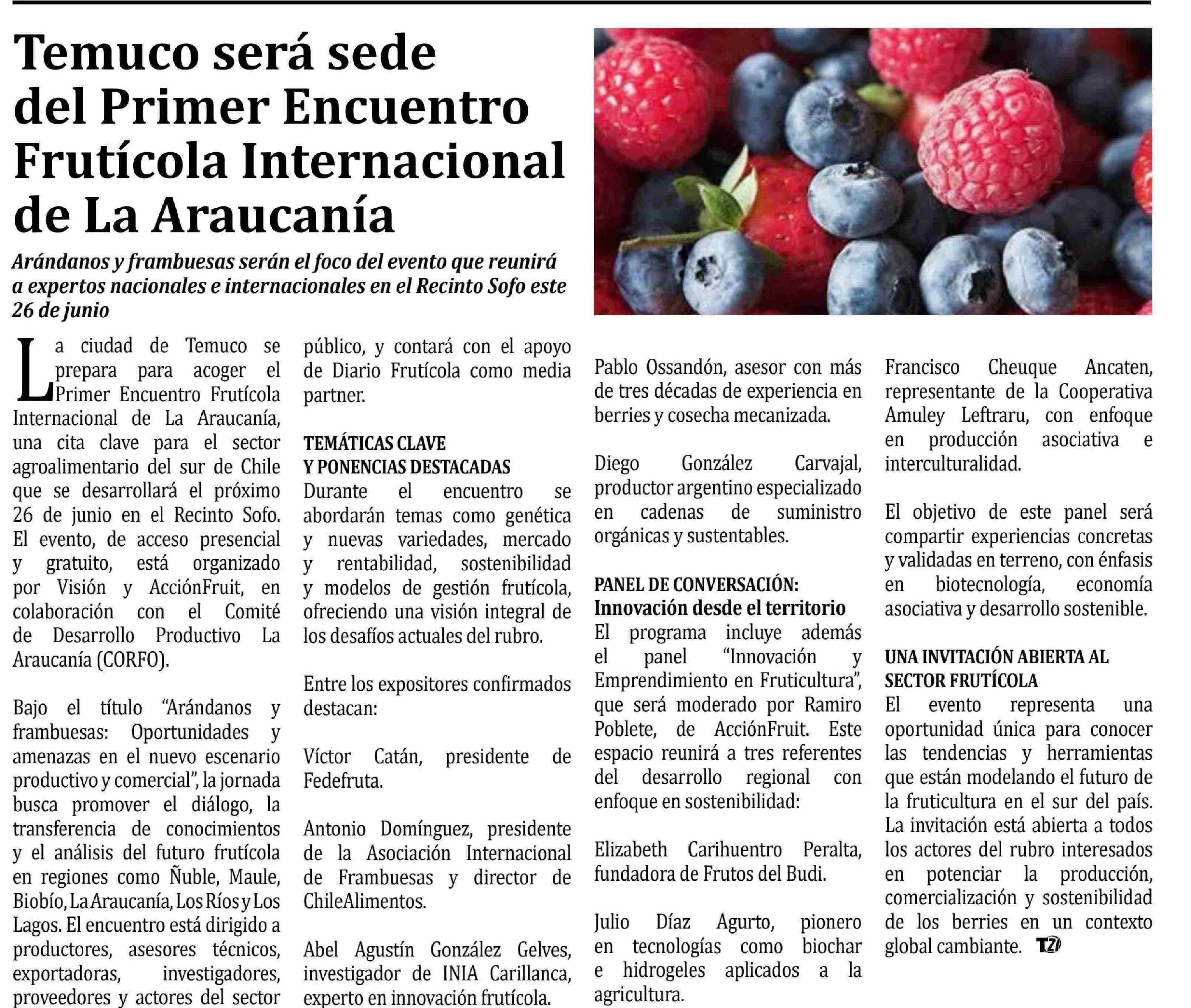 Título: Temuco será sede del Primer Encuentro Frutícola Internacional de La Araucanía
