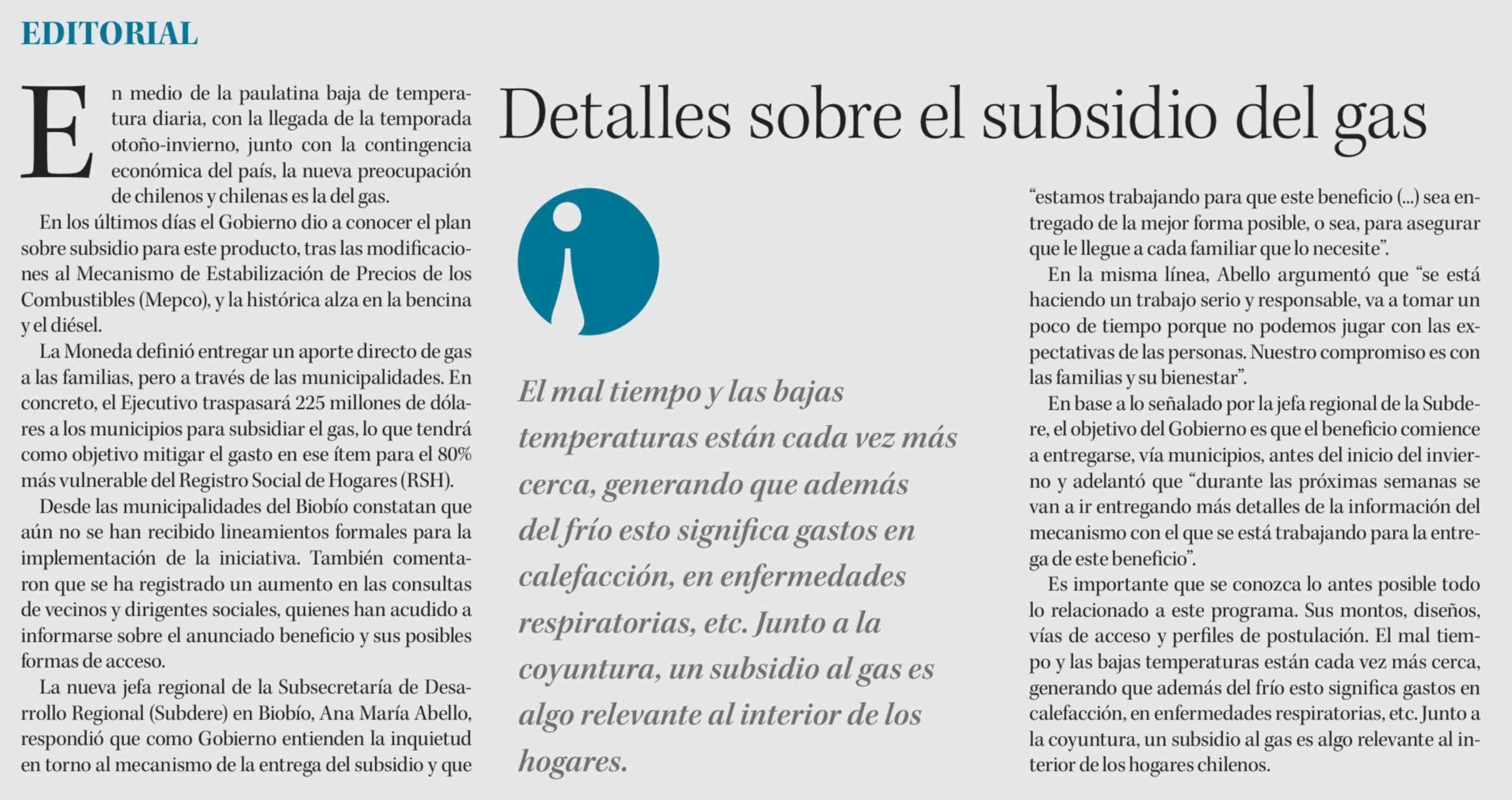 Editorial: Detalles sobre el subsidio del gas