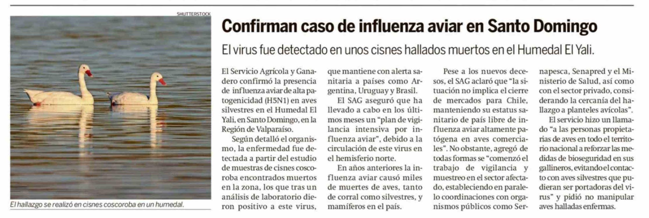 Confirman caso de influenza aviar en Santo Domingo
