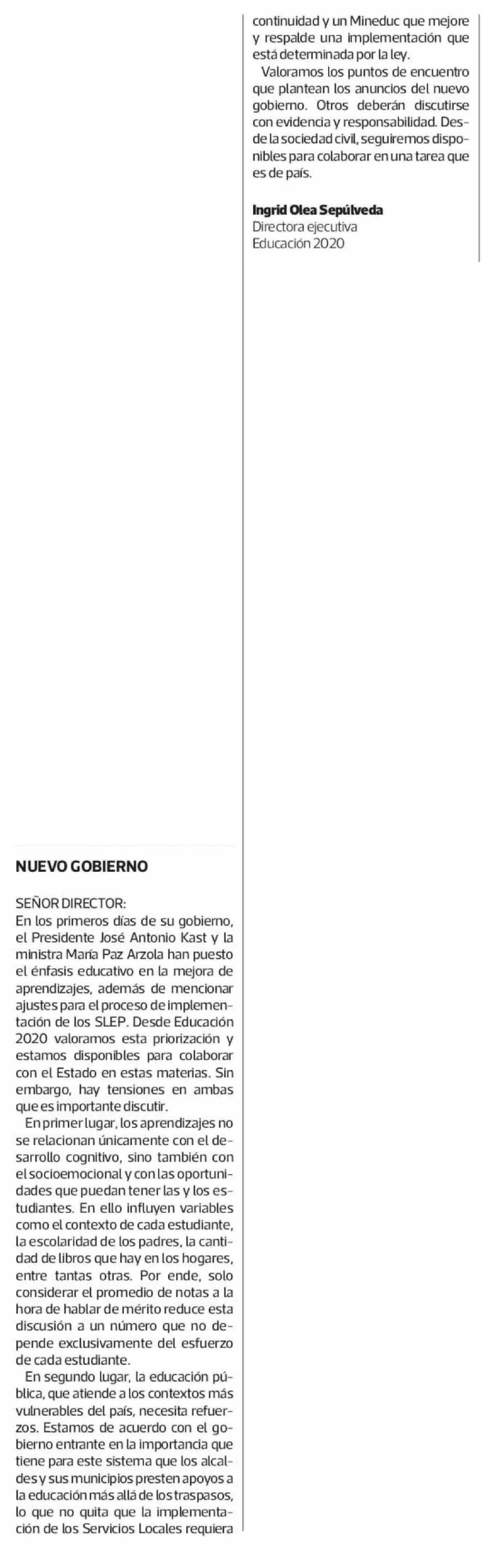 Cartas: NUEVO GOBIERNO