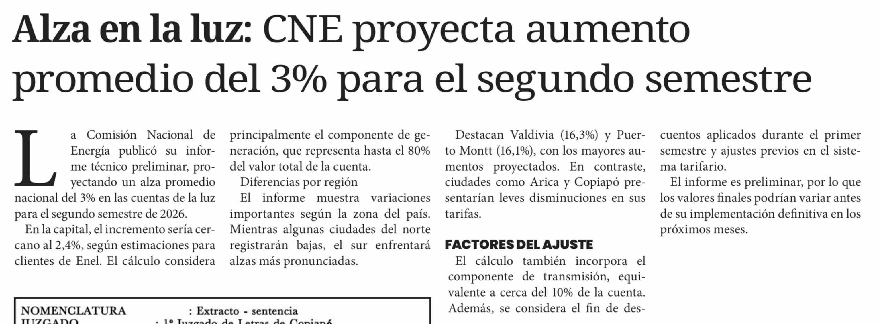 Alza en la luz: CNE proyecta aumento promedio del 3% para el segundo semestre