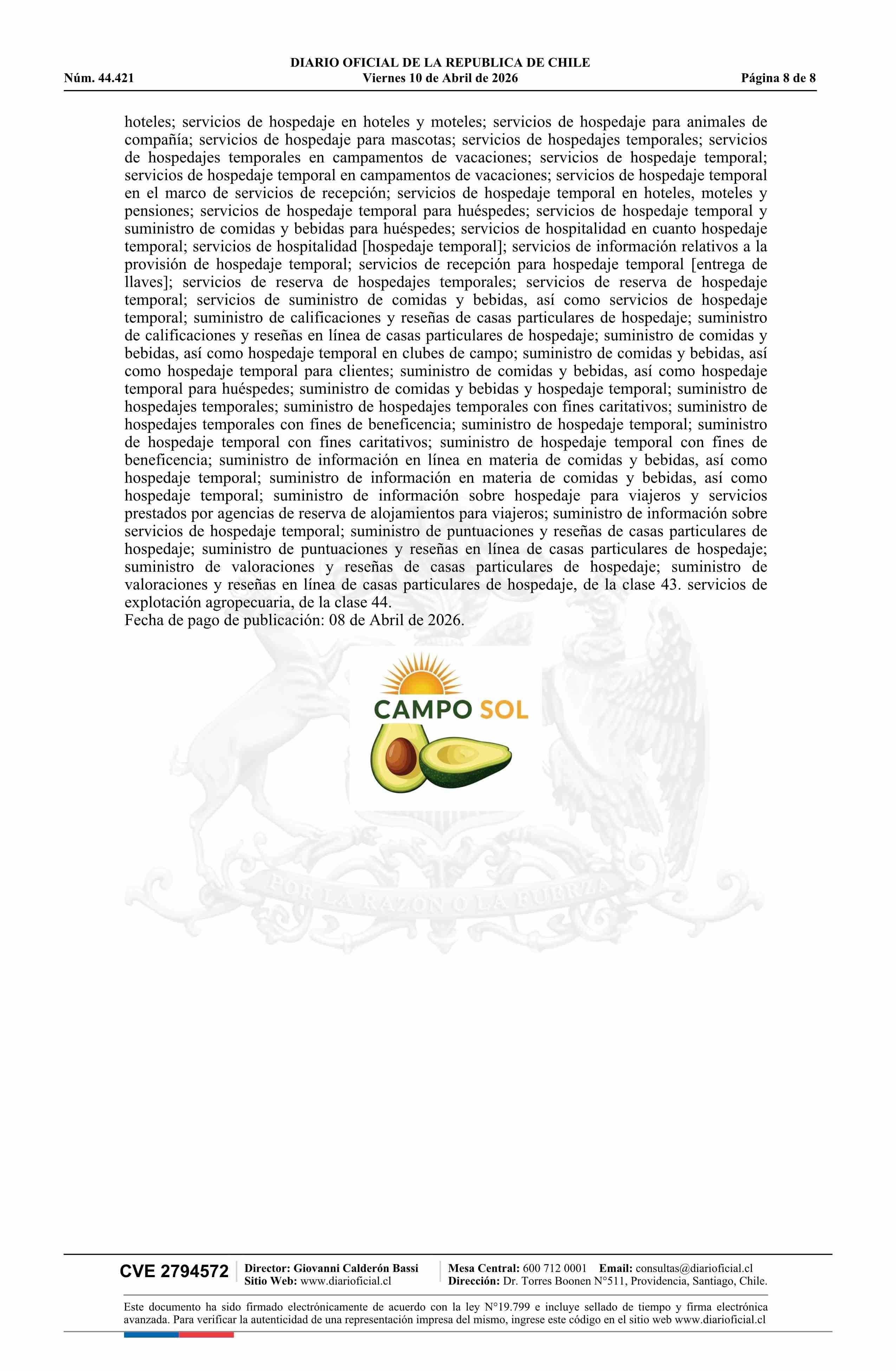 Diario Oficial Edición Electrónica (Diario Oficial de Chile - 6 Marcas Y Patentes)