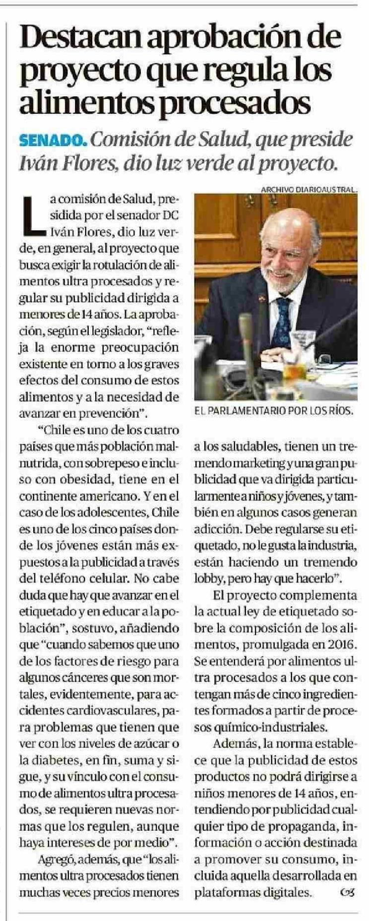 Destacan aprobación de proyecto que regula los alimentos procesados