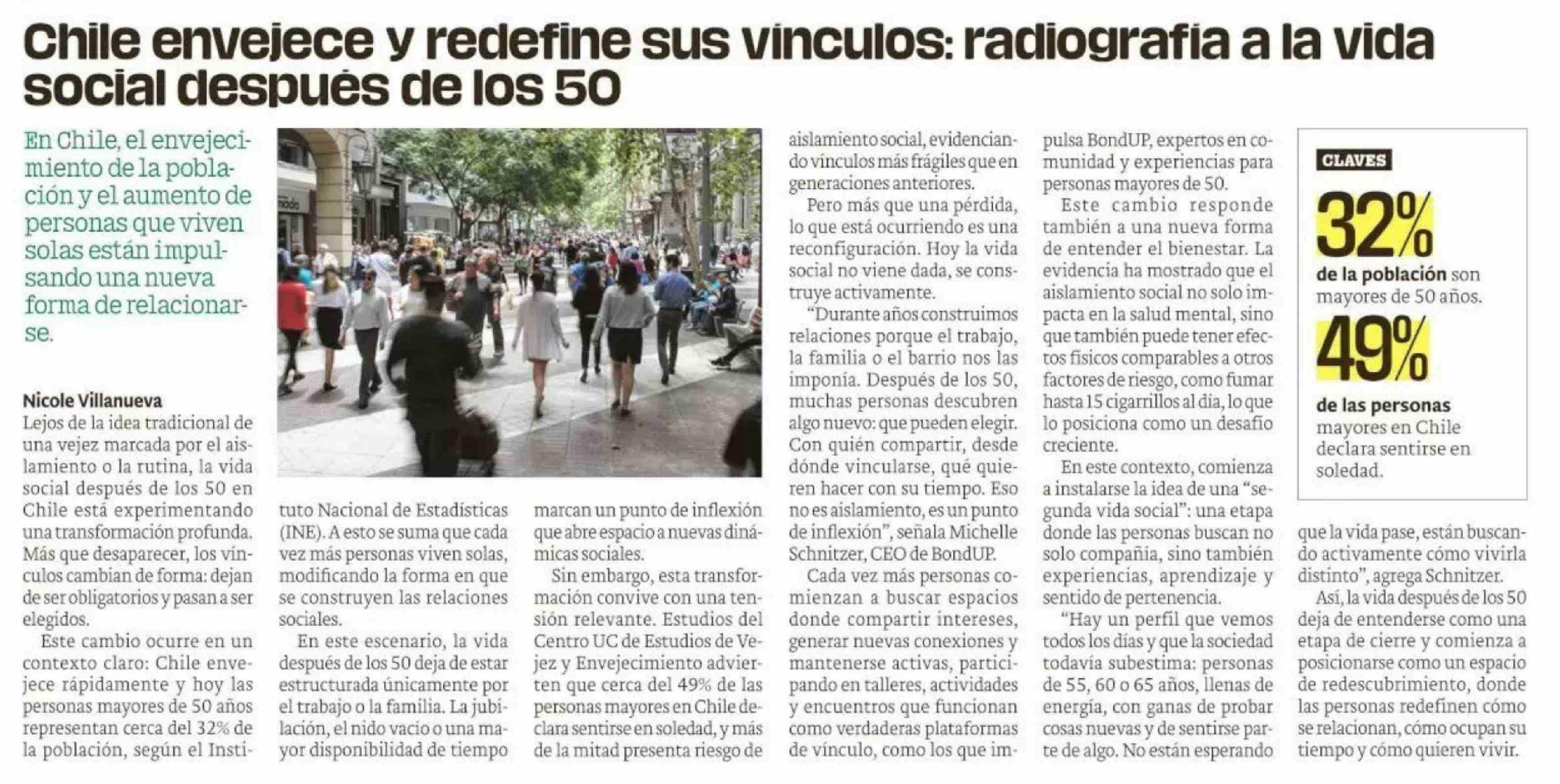 Chile envejece y redefine sus vinculos: radiografia a la vida social despues de los 50