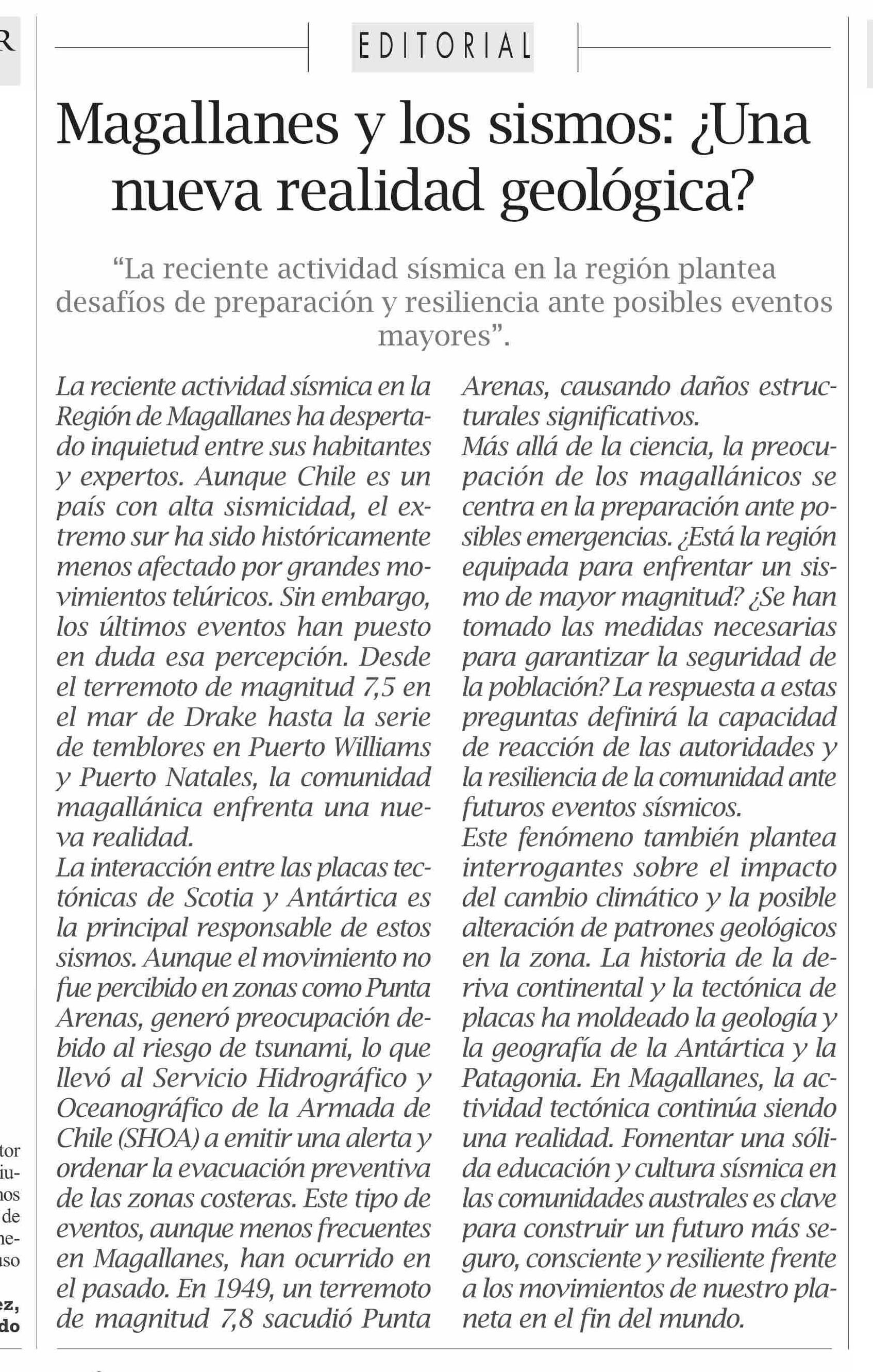 EDITORIAL: Magallanes y los sismos: ¿Una nueva realidad geológica?