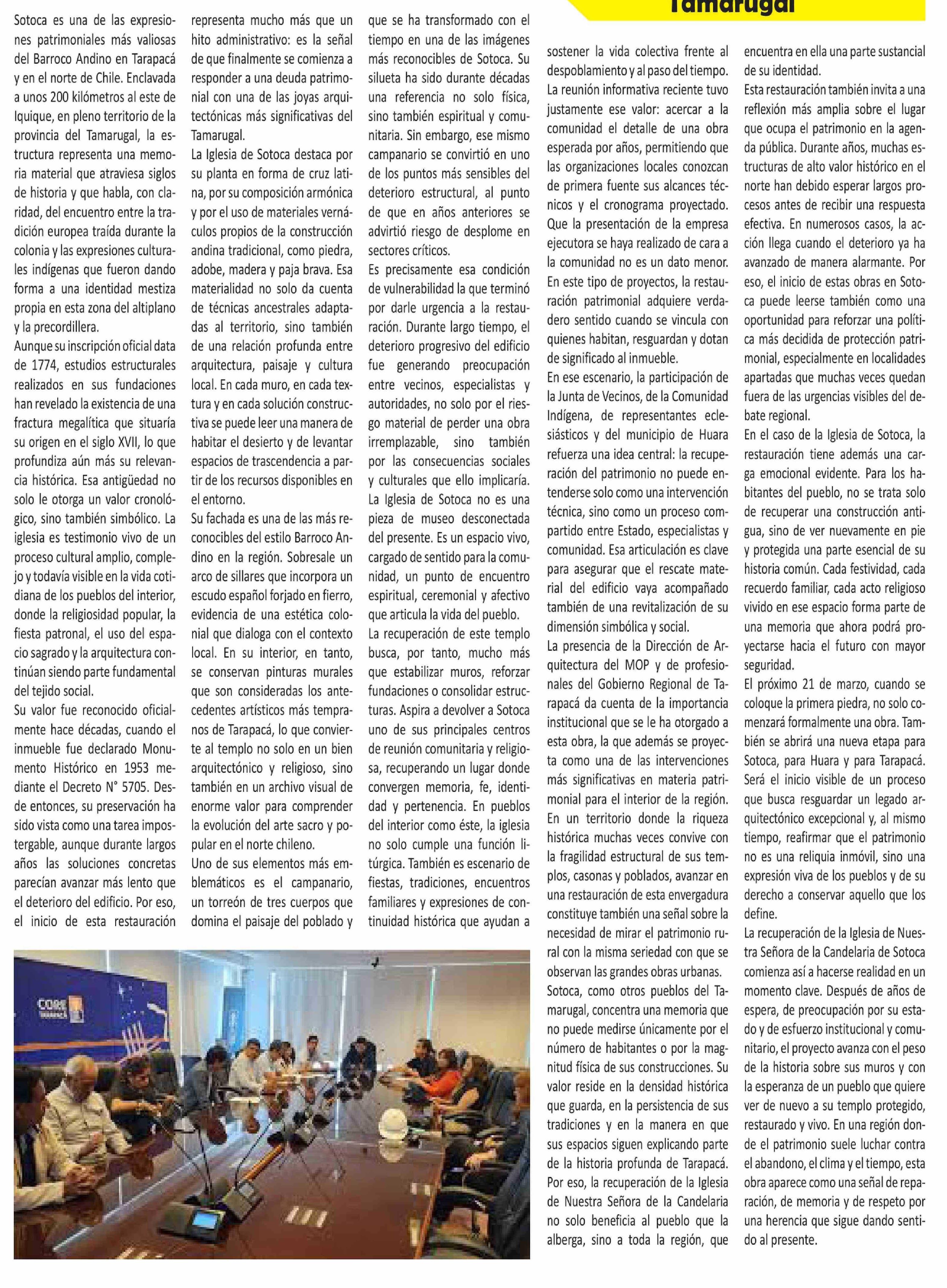 Iglesia de Sotoca inicia su esperada recuperación y abre una nueva etapa para el patrimonio del Tamarugal