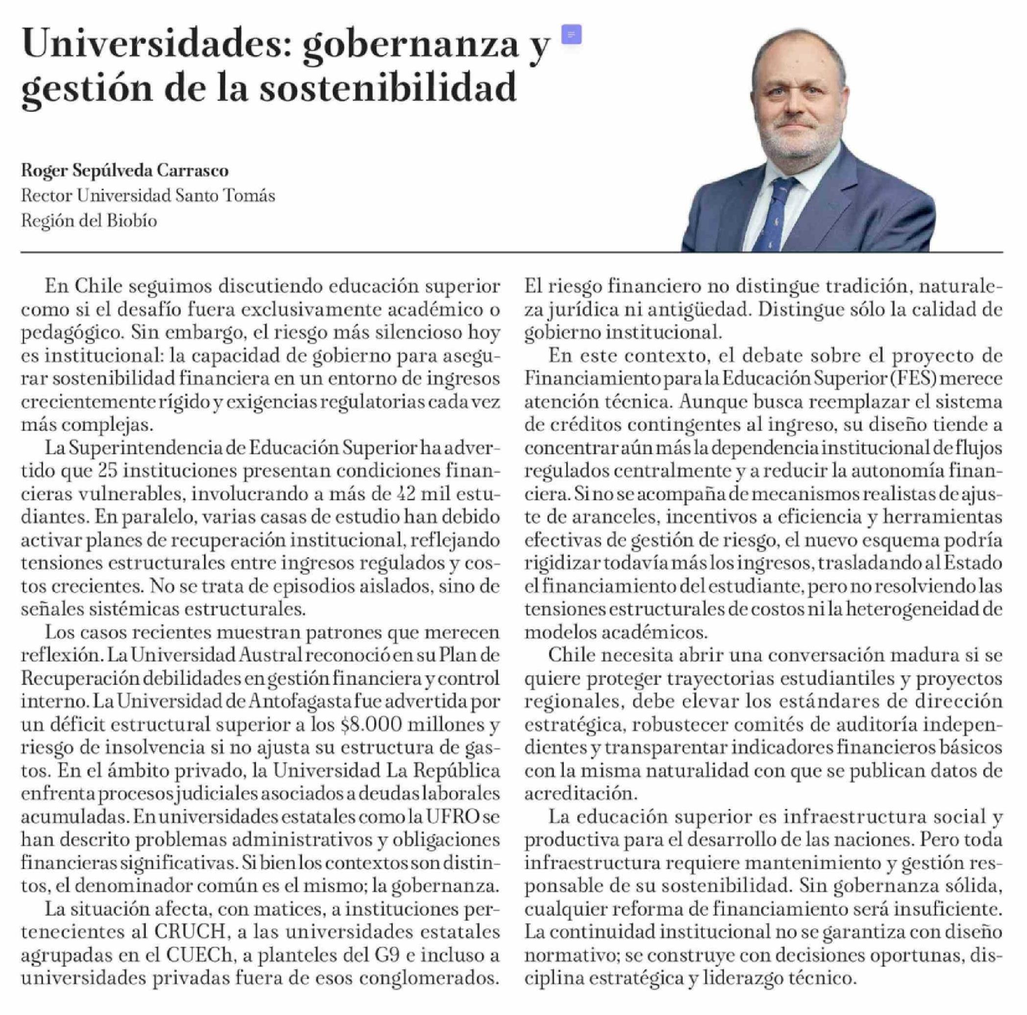 Columnas de Opinión: Universidades: gobernanza y gestión de la sostenibilidad
