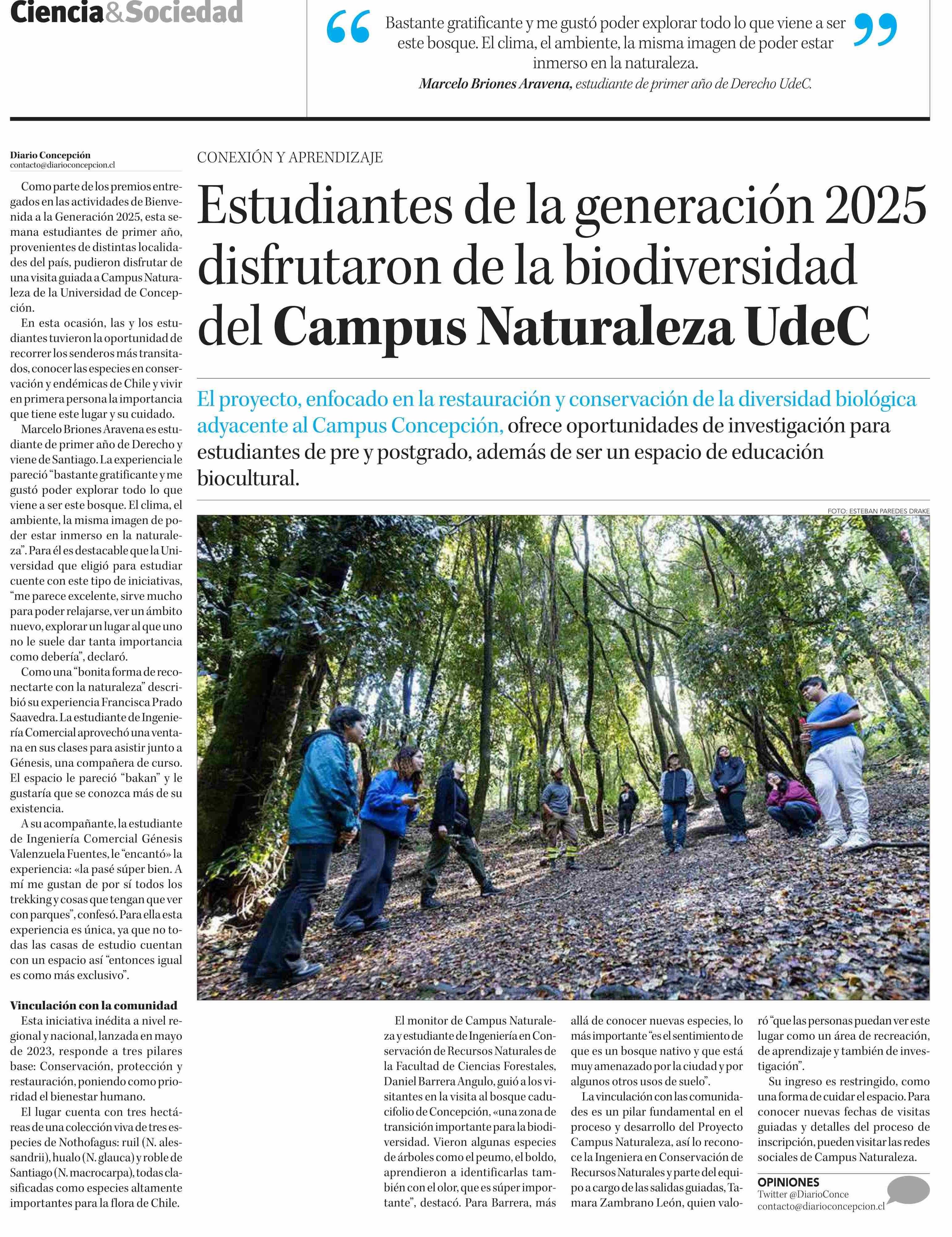 Estudiantes de la generación 2025 disfrutaron de la biodiversidad del Campus Naturaleza UdeC