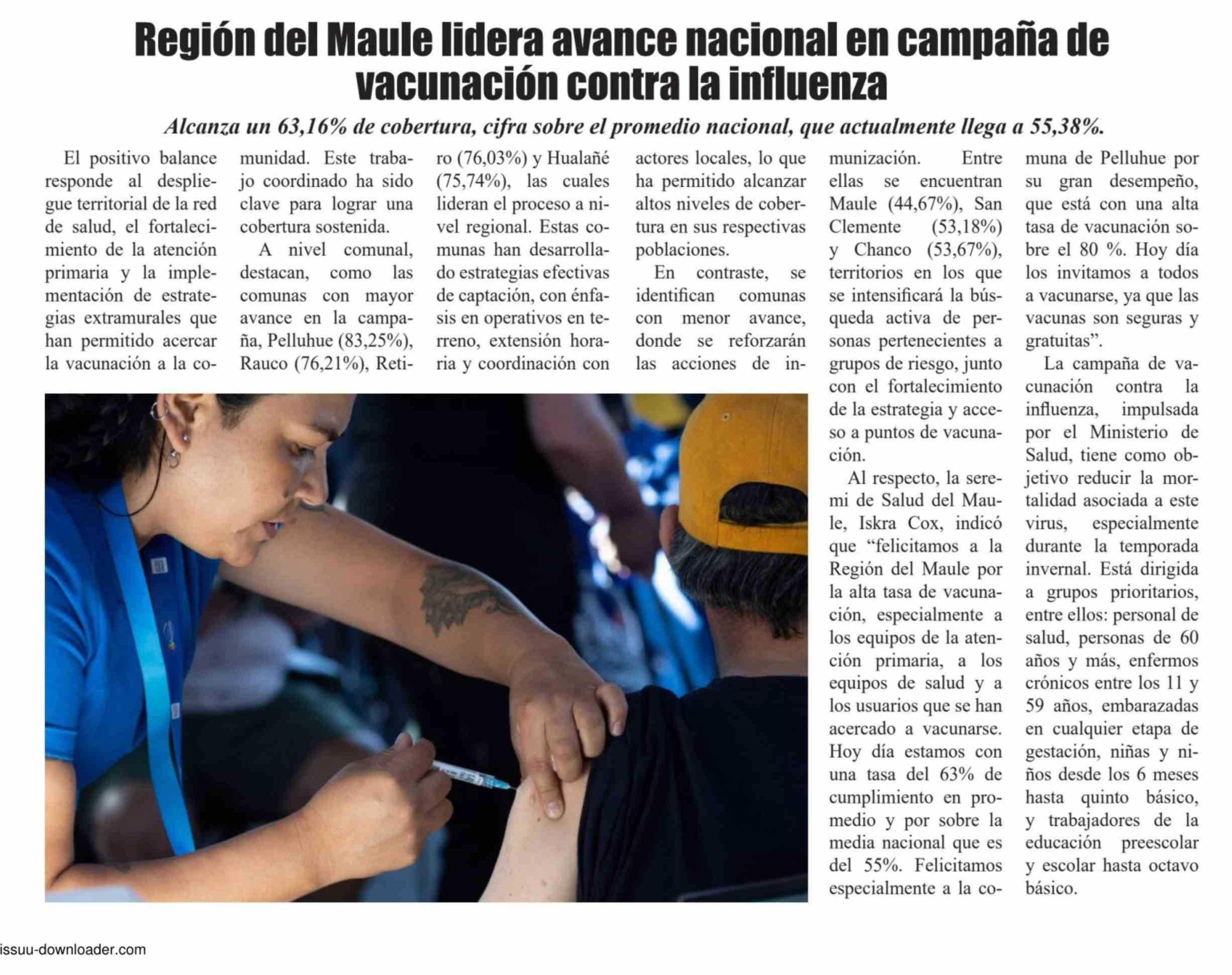 Región del Maule lidera avance nacional en campaña de vacunación contra la influenza