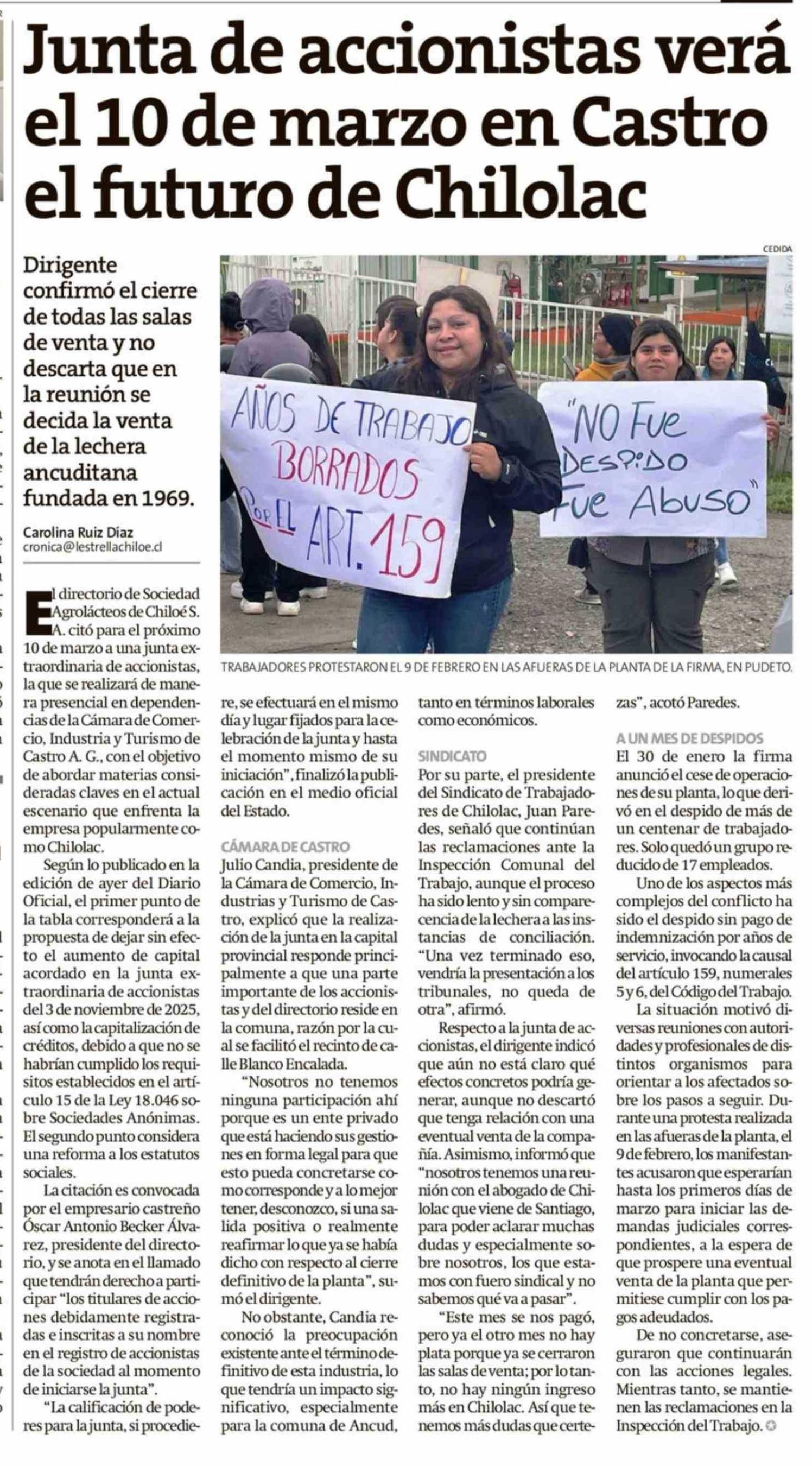 Junta de accionistas verá el 10 de marzo en Castro el futuro de Chilolac