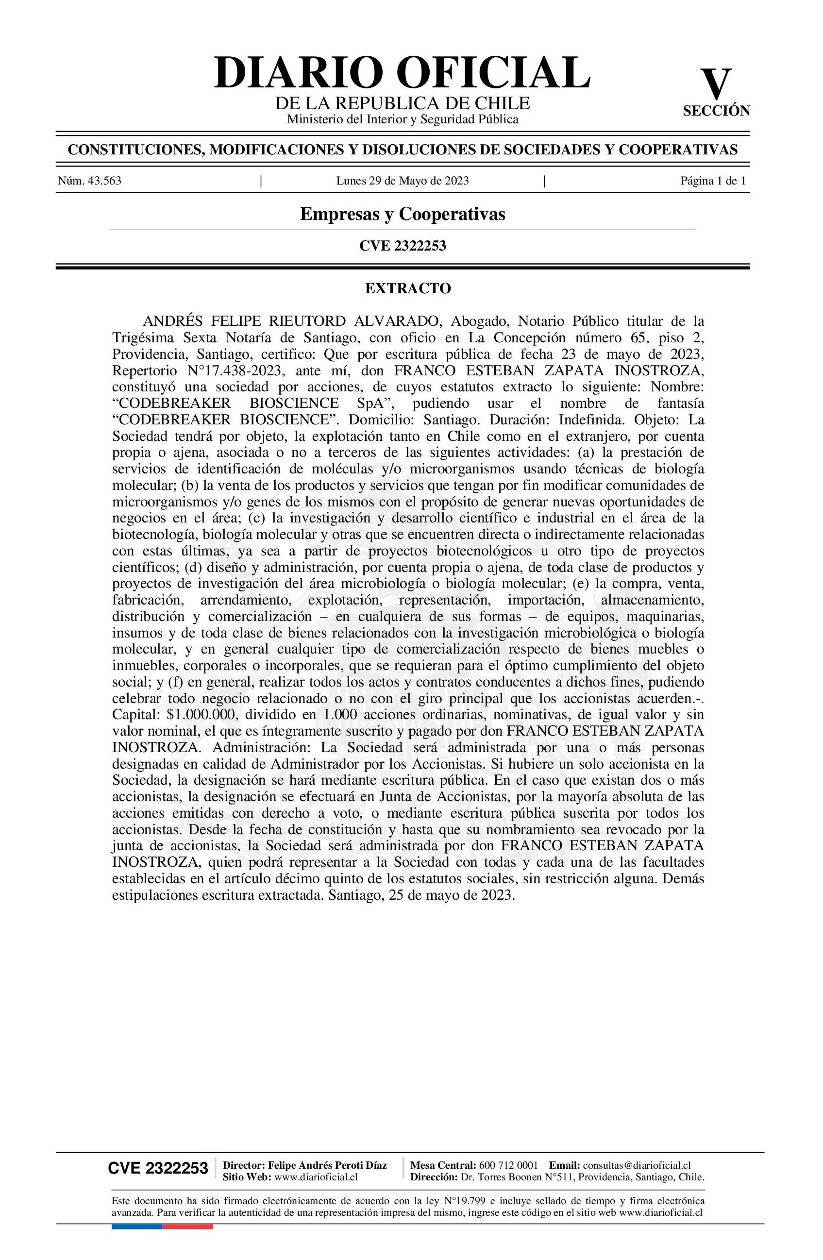 Diario Oficial Edición Electrónica (Diario Oficial de Chile - 5 Empresas Y Cooper)