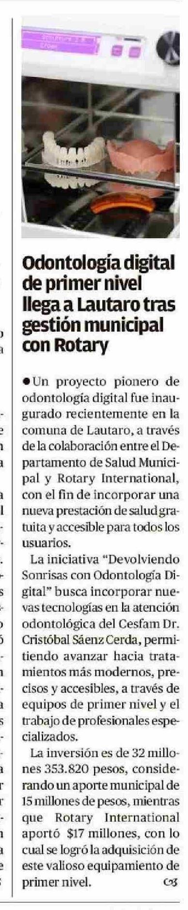 Odontología digital de primer nivel llega a Lautaro tras gestión municipal con Rotary