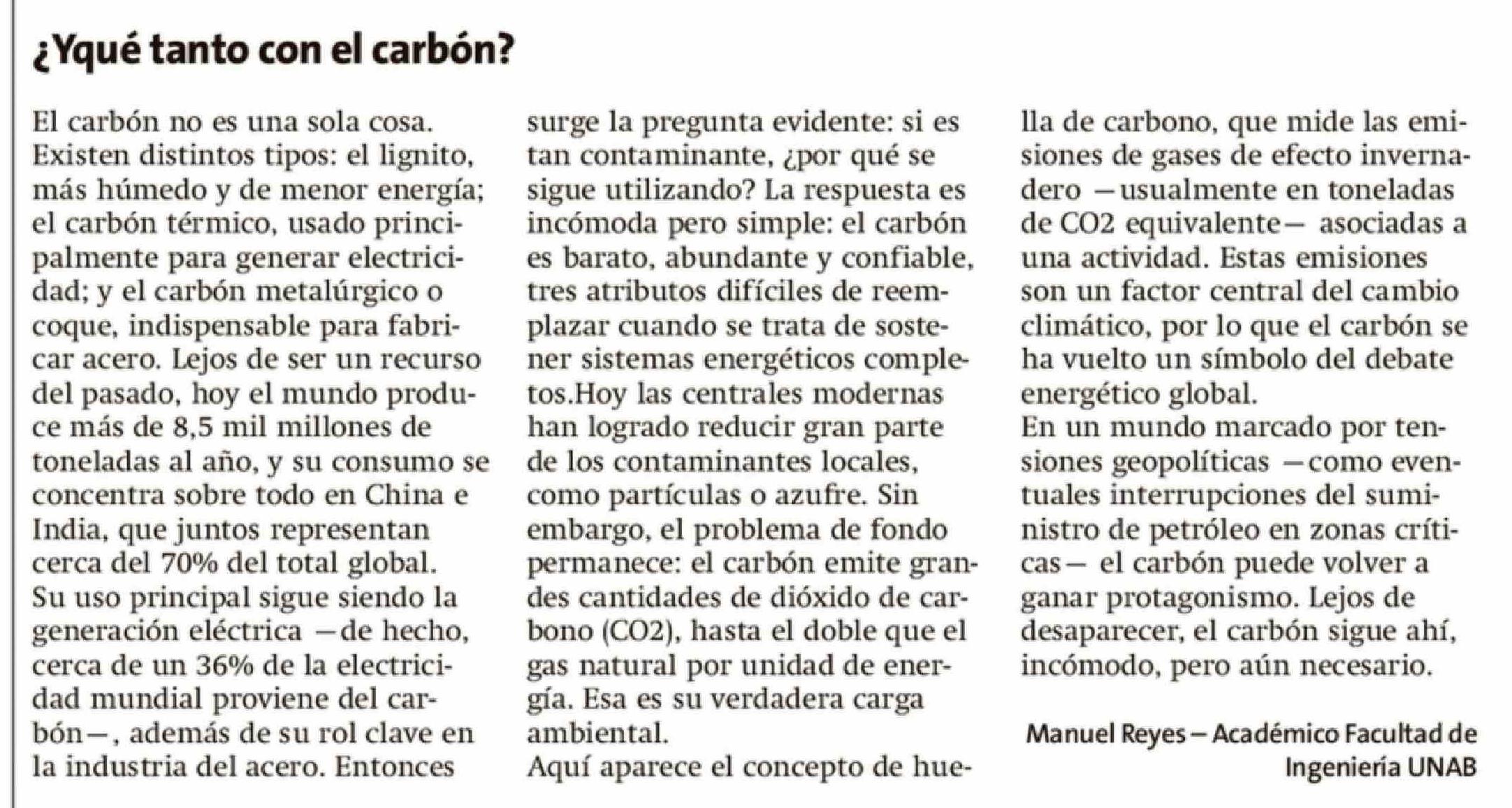 Título: Columnas de Opinión: ¿Yqué tanto con el carbón?