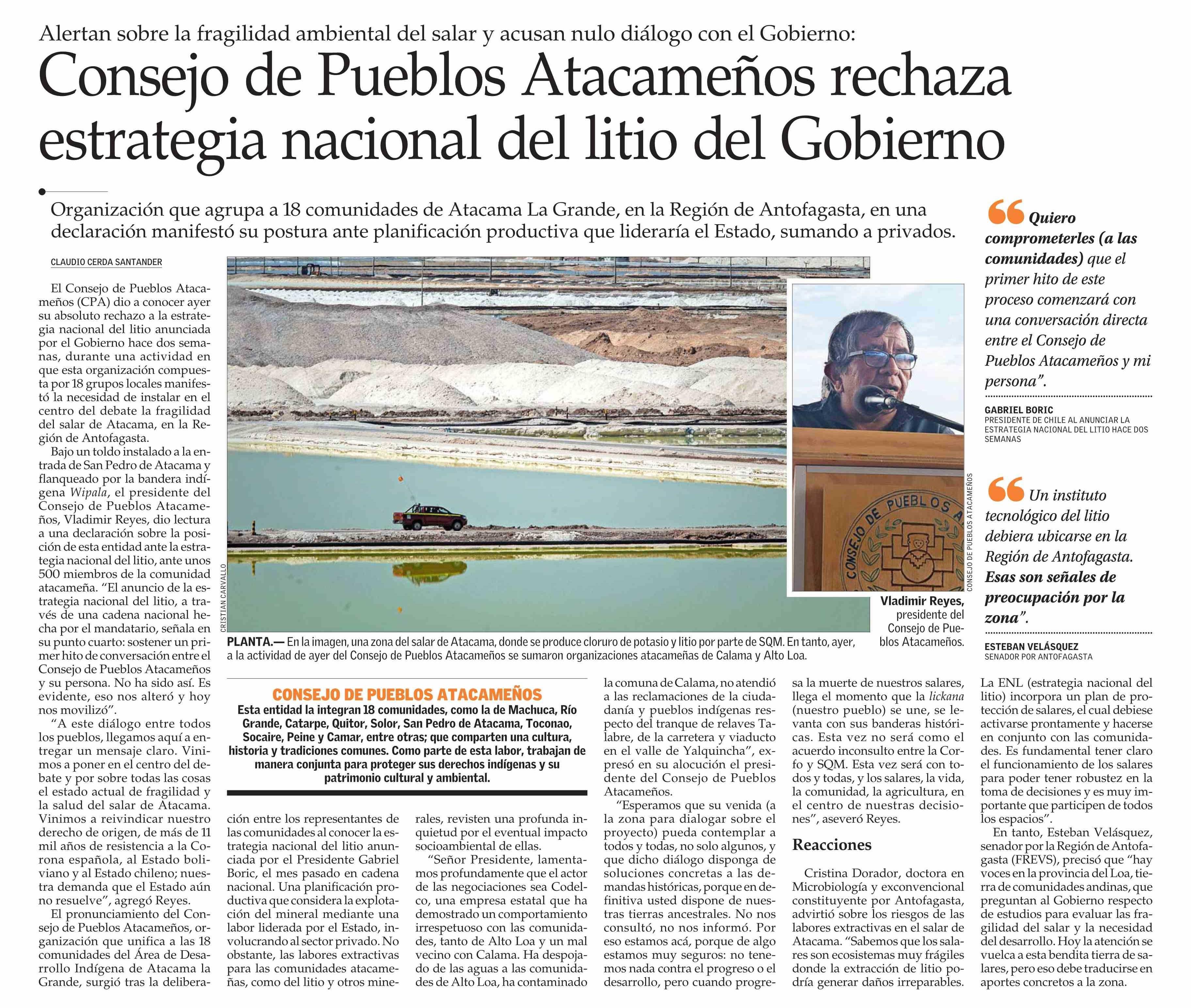 Consejo de Pueblos Atacameños rechaza estrategia nacional del litio del Gobierno