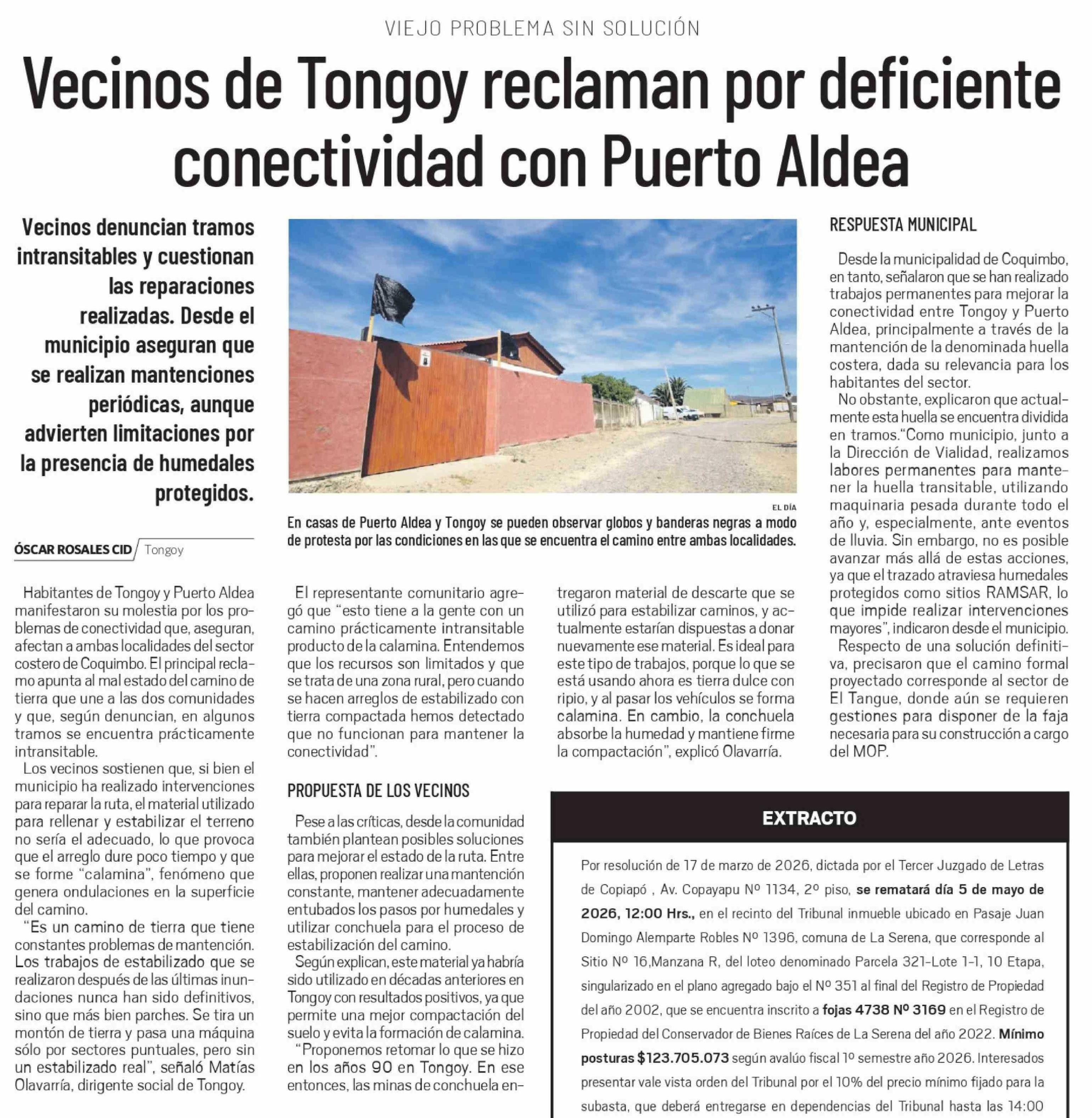 Vecinos de Tongoy reclaman por deficiente conectividad con Puerto Aldea
