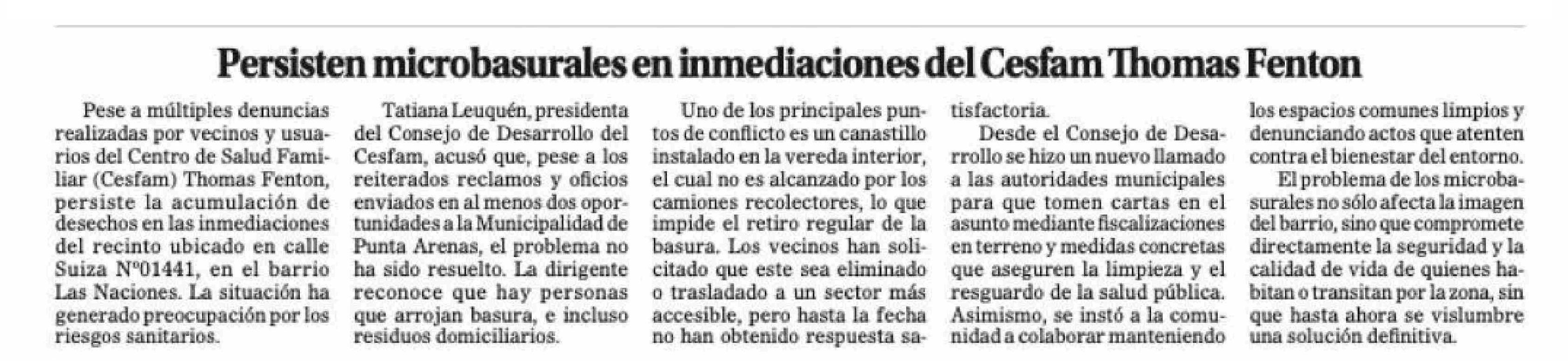 Persisten microbasurales en inmediadones del Cesfam Thomas Fenton
