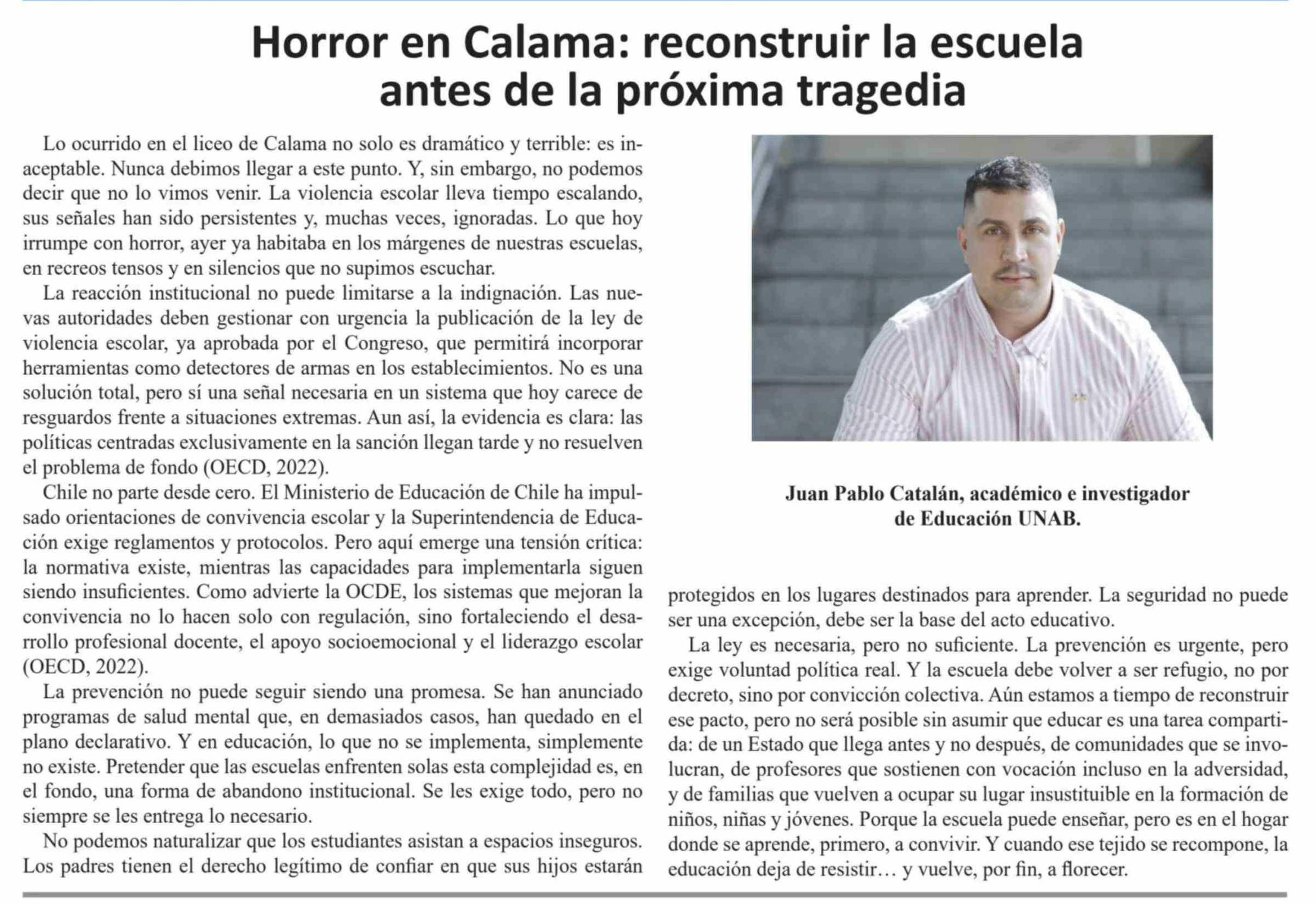 Columnas de Opinión: Horror en Calama: reconstruir la escuela antes de la próxima tragedia