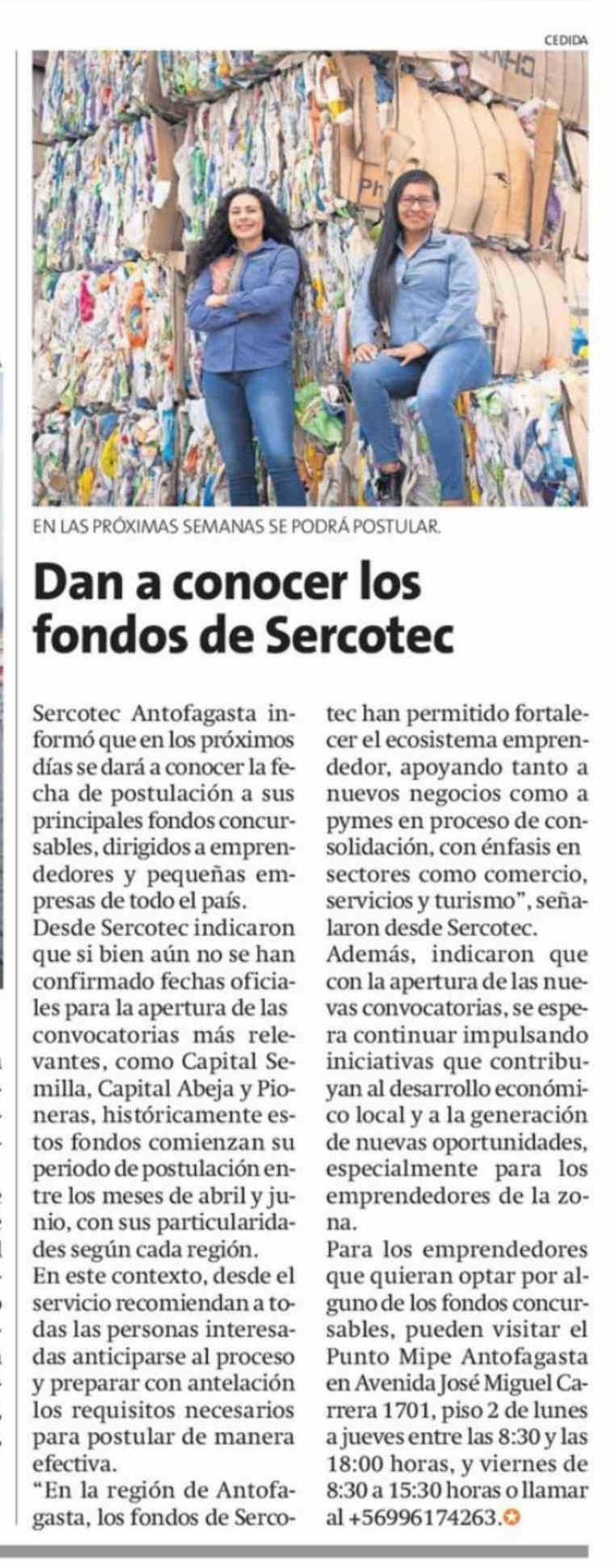 Dan a conocer los fondos de Sercotec