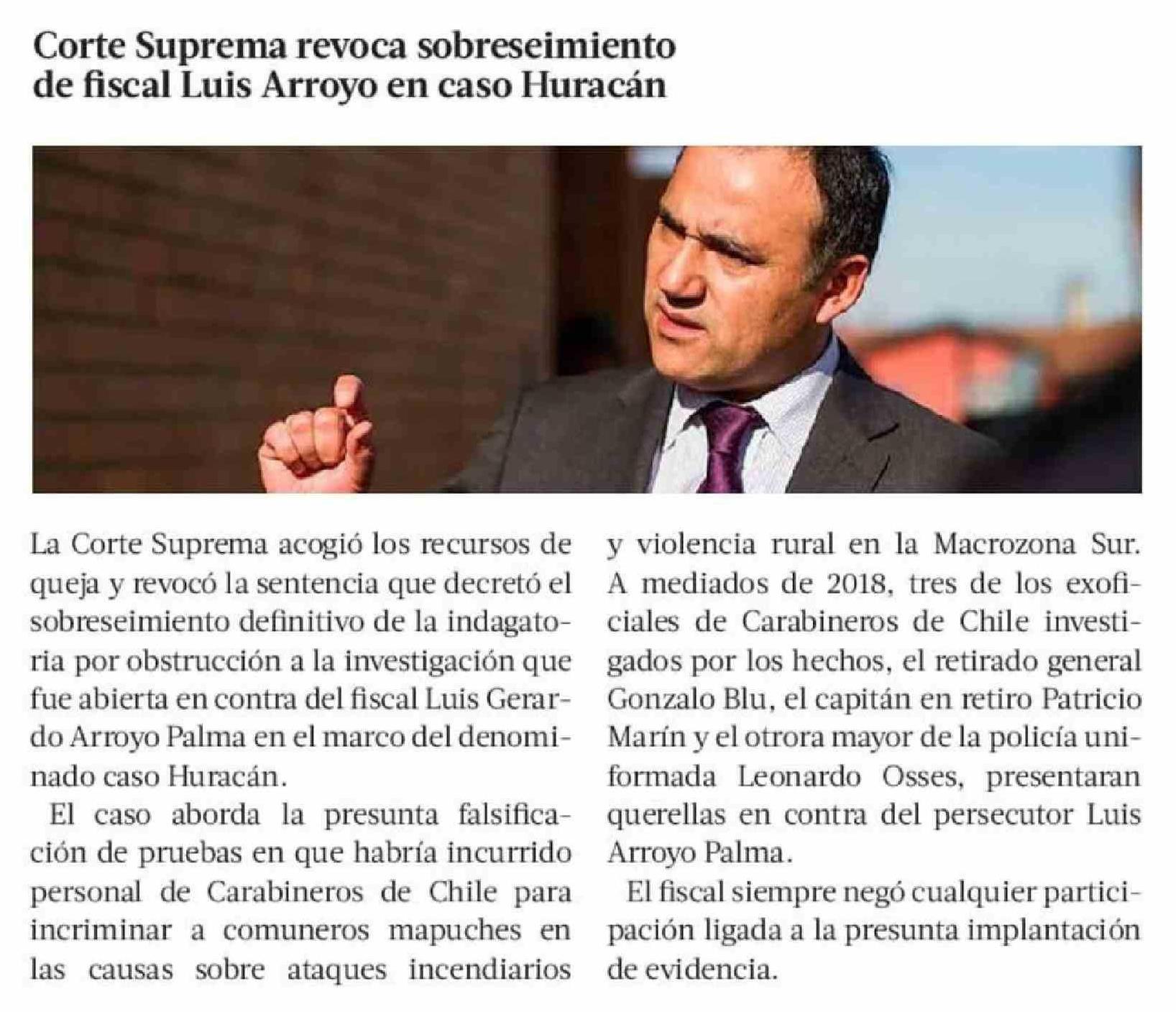 Corte Suprema revoca sobreseimiento de fiscal Luis Arroyo en caso Huracán