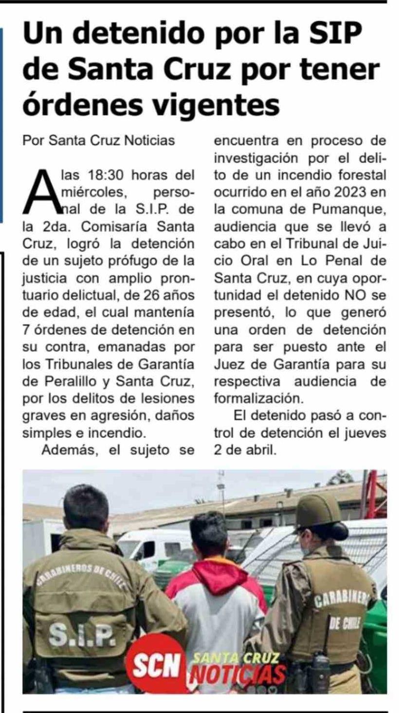 Un detenido por la SIP de Santa Cruz por tener órdenes vigentes