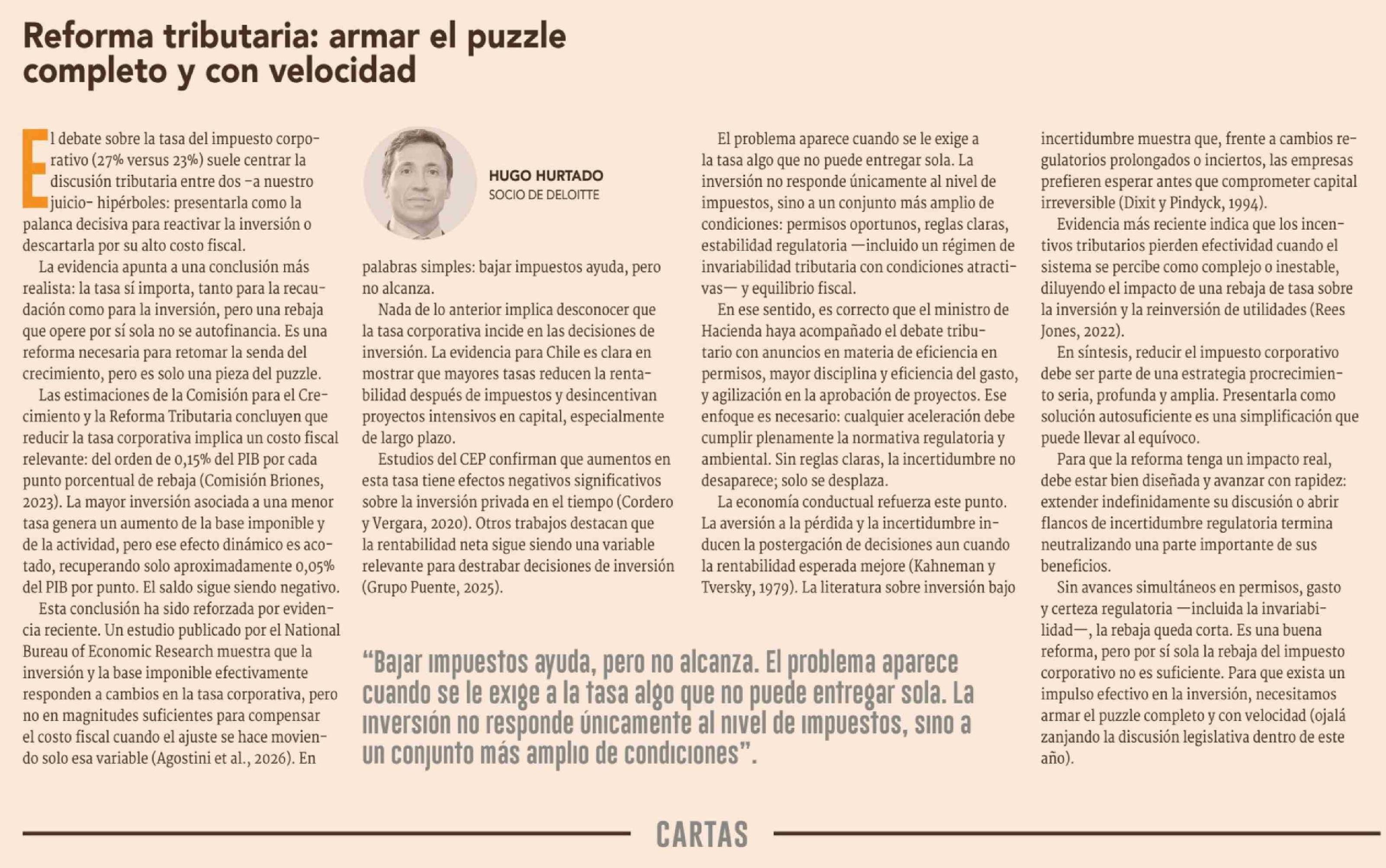 Columnas de Opinión: Reforma tributaria: armar el puzzle completo y con velocidad