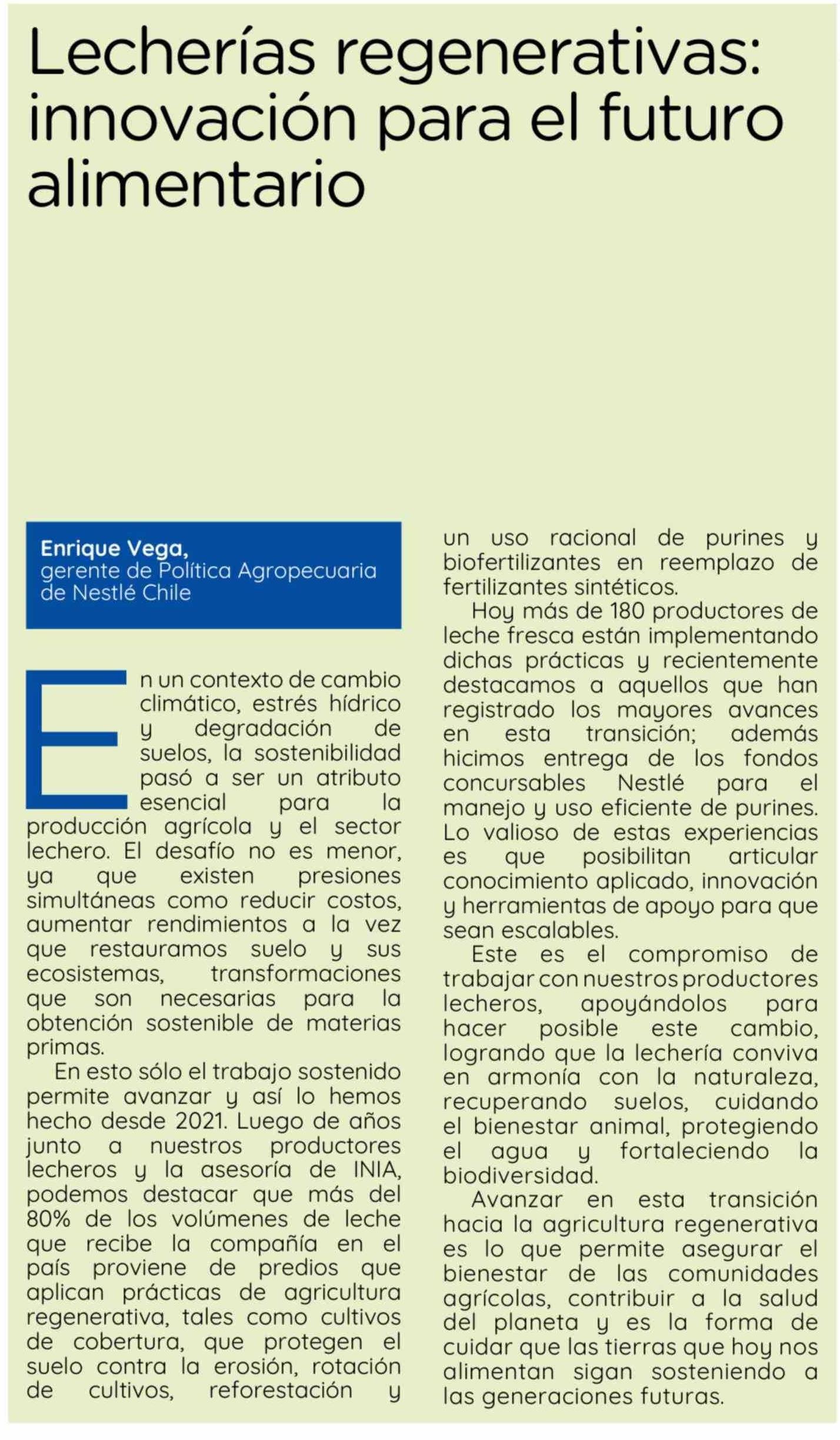 Columnas de Opinión: Lecherías regenerativas: innovación para el futuro alimentario