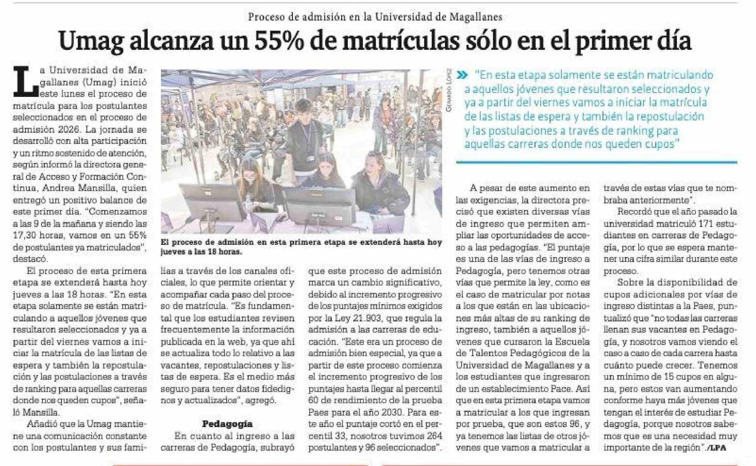 Umag alcanza un 55% de matrículas sólo en el primer día
