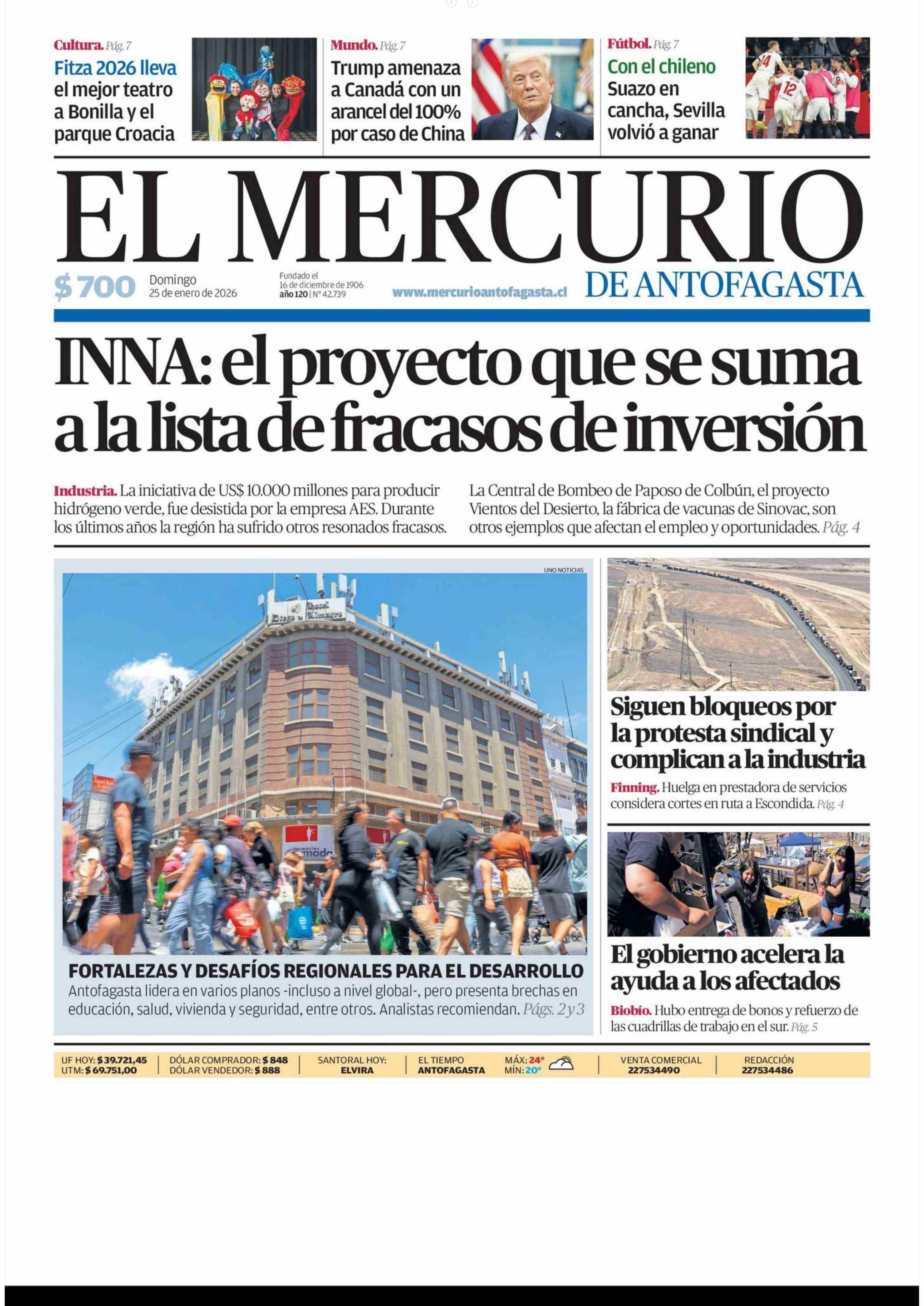 PORTADA EL MERCURIO DE ANTOFAGASTA CHILE