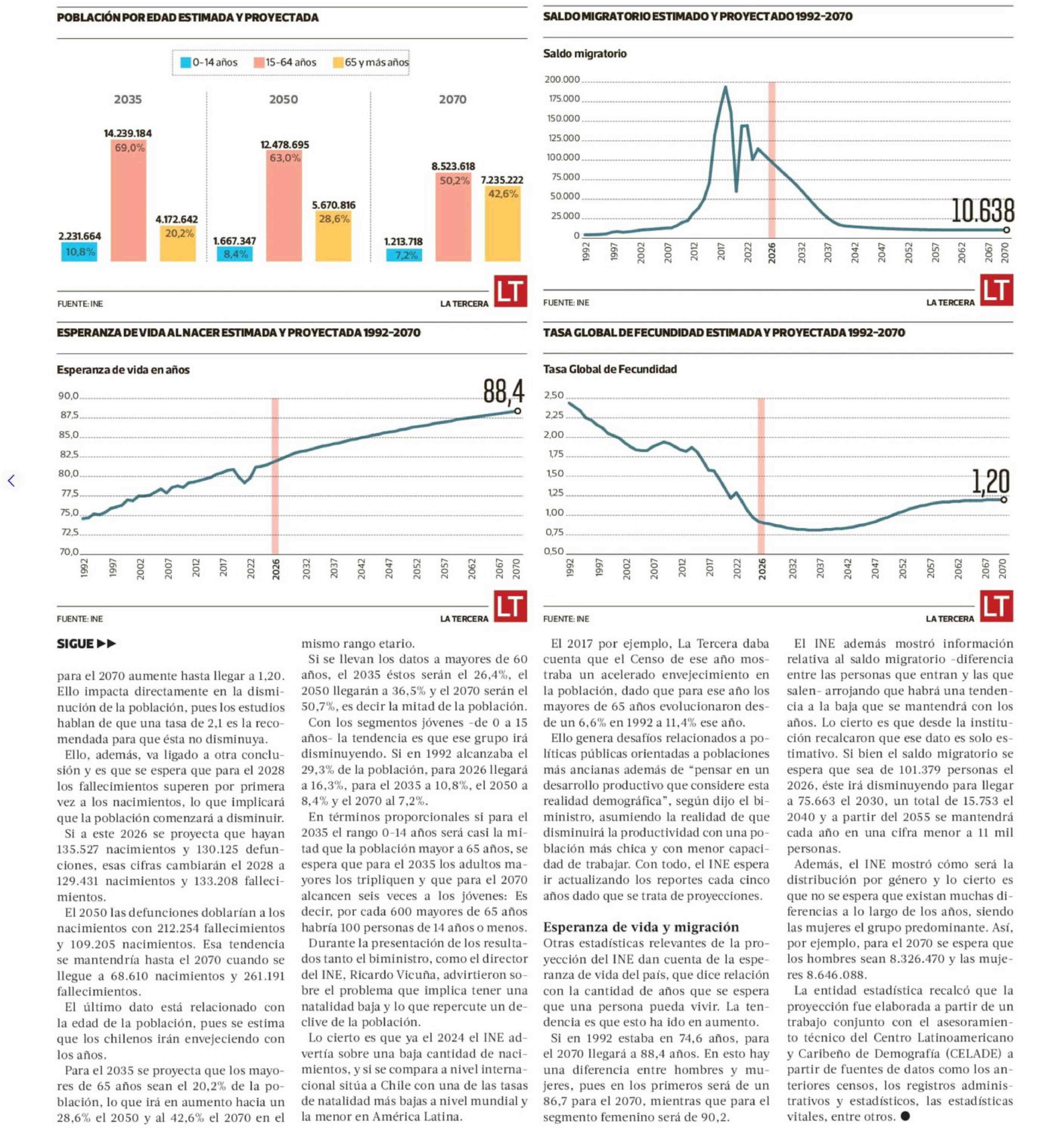 INE proyecta que población chilena llegará a 20.150.948 en 2026, pero irá disminuyendo y envejeciendo