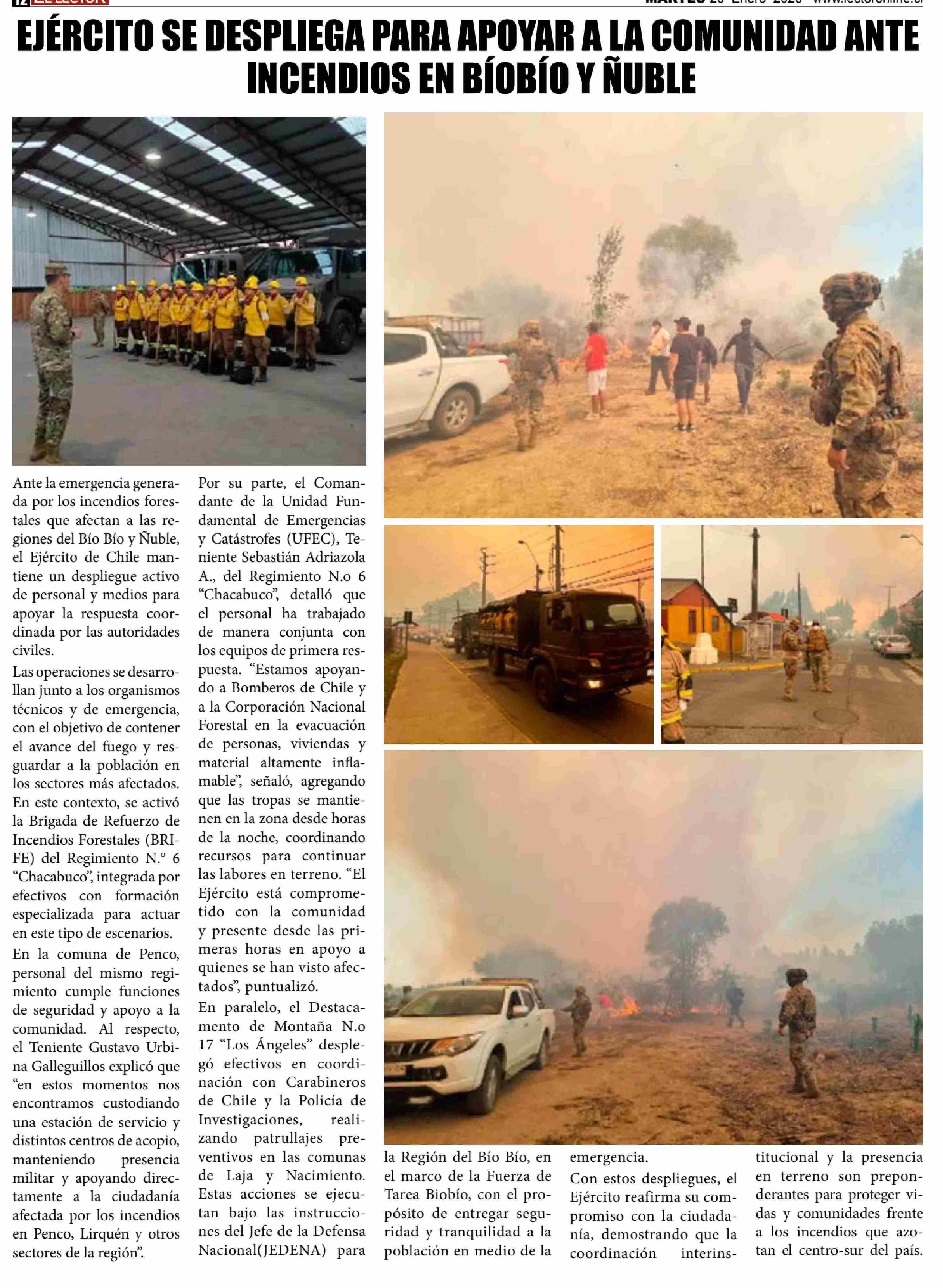 EJÉRCITO SE DESPLIEGA PARA APOYAR ALA COMUNIDAD ANTE INCENDIOS EN BÍOBÍO Y ÑUBLE