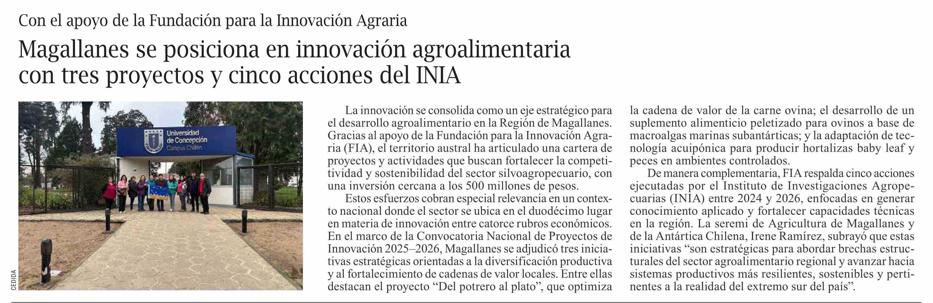Magallanes se posiciona en innovación agroalimentaria con tres proyectos y cinco acciones del INIA