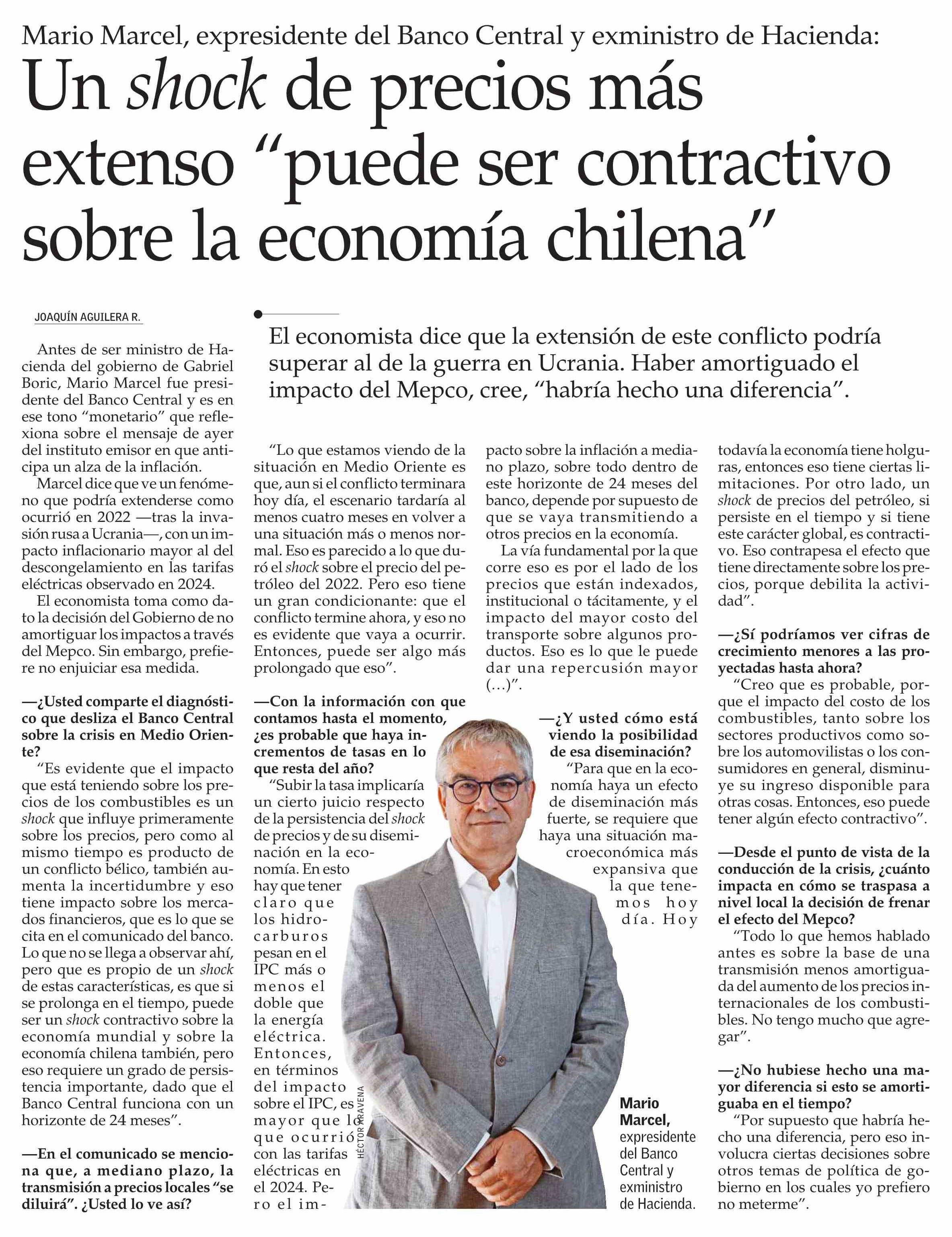 Un shock de precios más extenso “puede ser contractivo sobre la economía chilena”