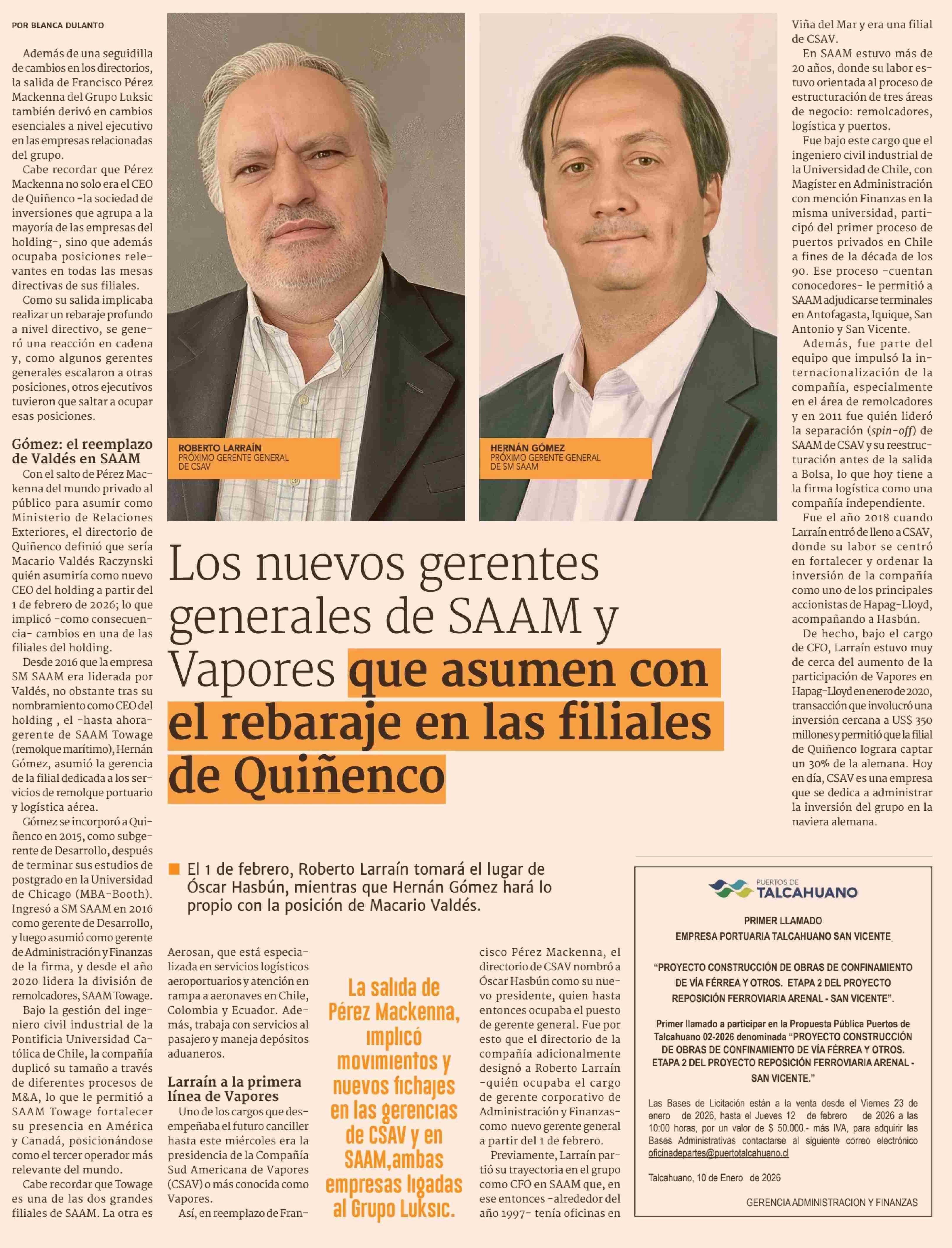Los nuevos gerentes generales de SAAM y Vapores que asumen con el rebaraje en las filiales de Quiñenco