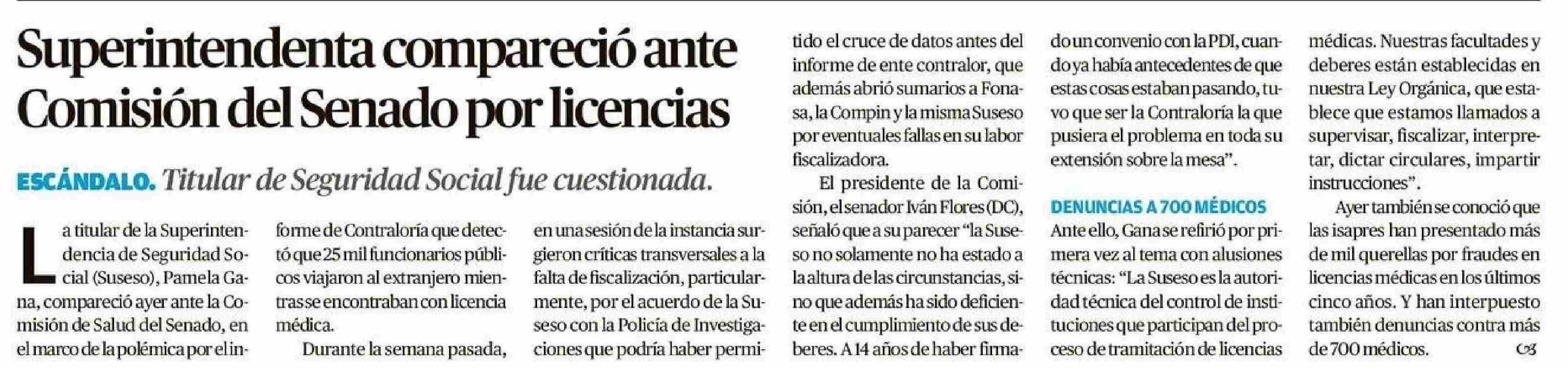 Superintendenta compareció ante Comisión del Senado por licencias