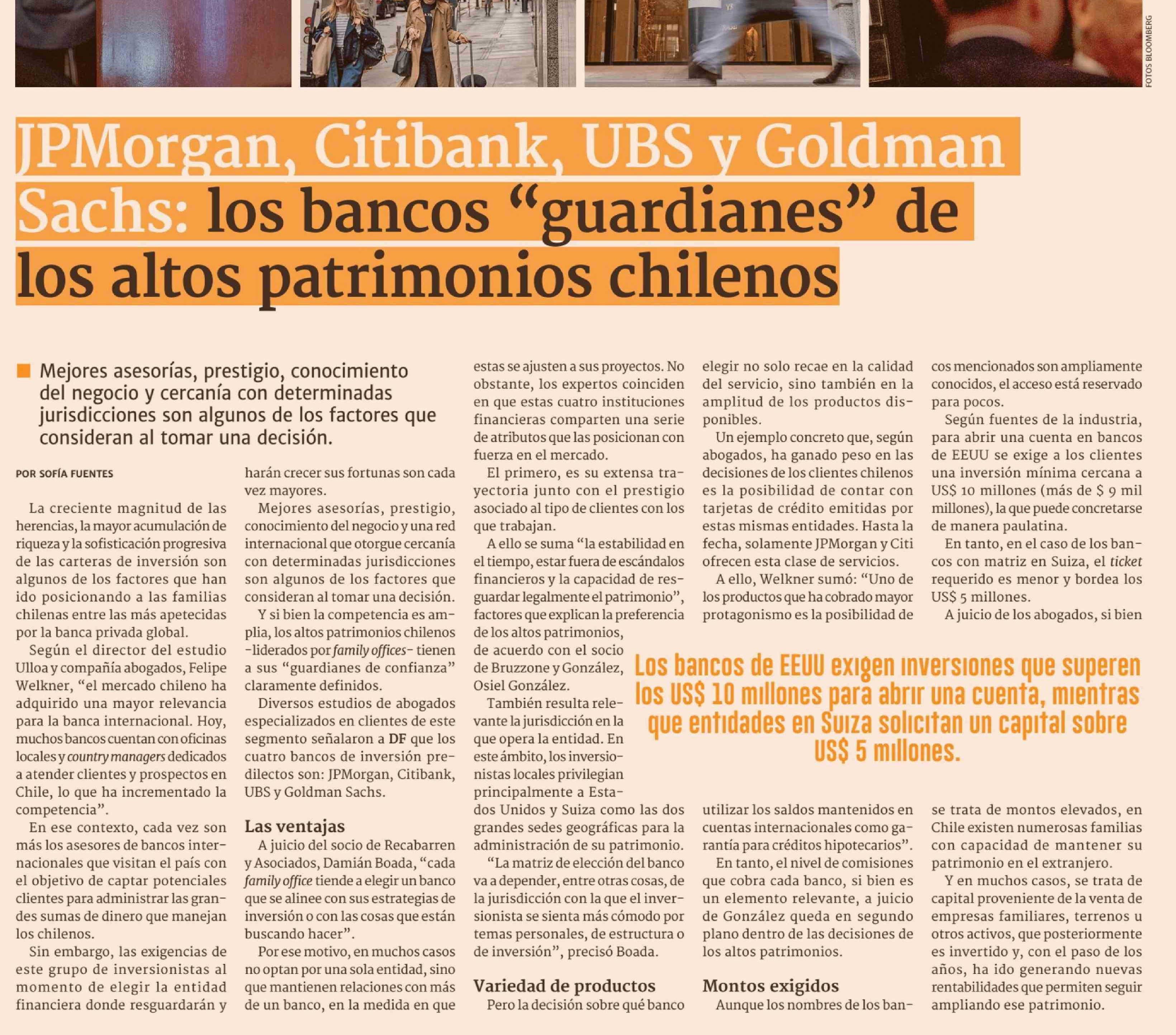 JPMorgan, Citibank, UBS y Goldman Sachs: los bancos "guardianes" de los altos patrimonios chilenos