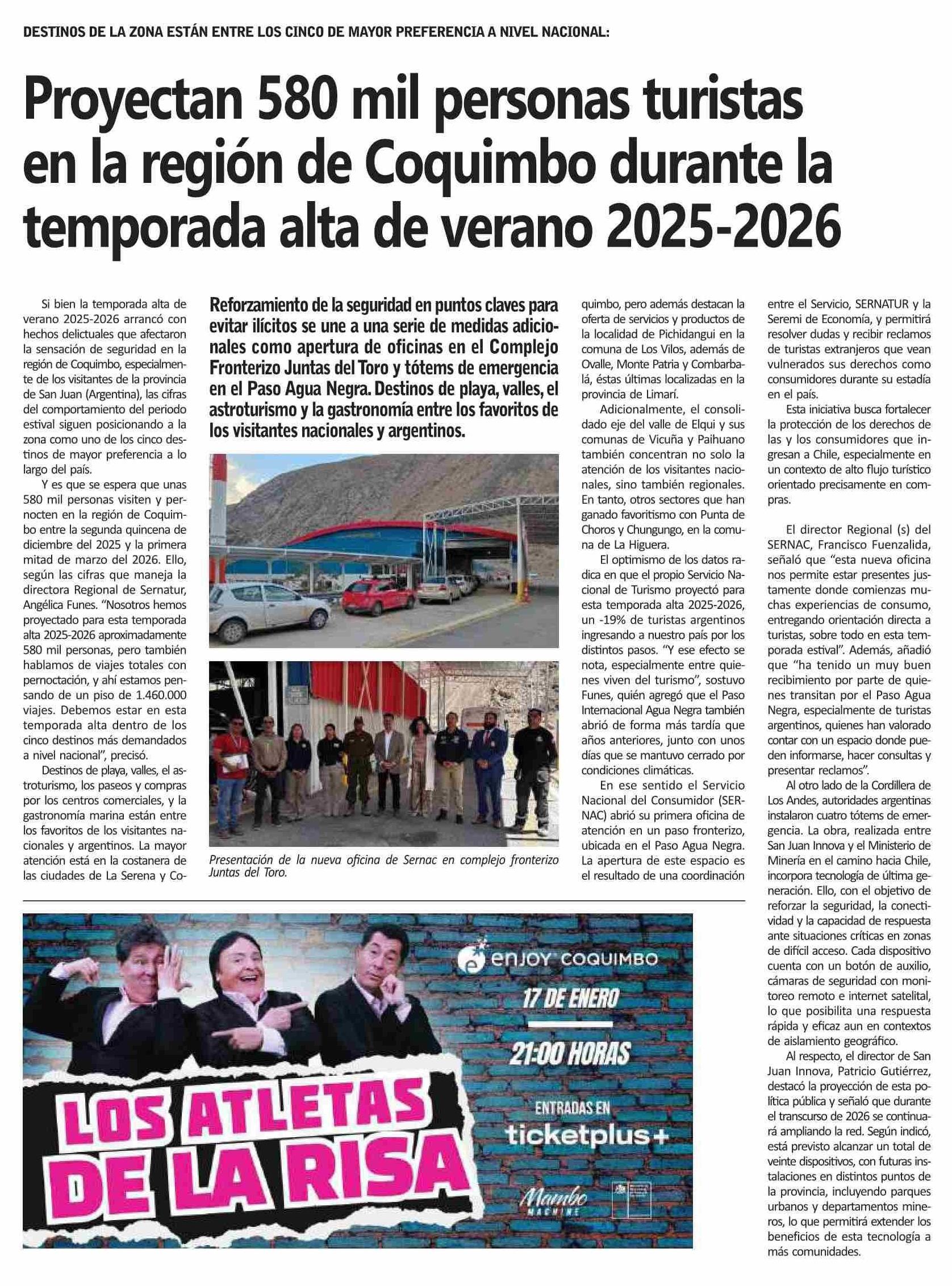 Proyectan 580 mil personas turistas en la región de Coquimbo durante la temporada alta de verano 2025-2026