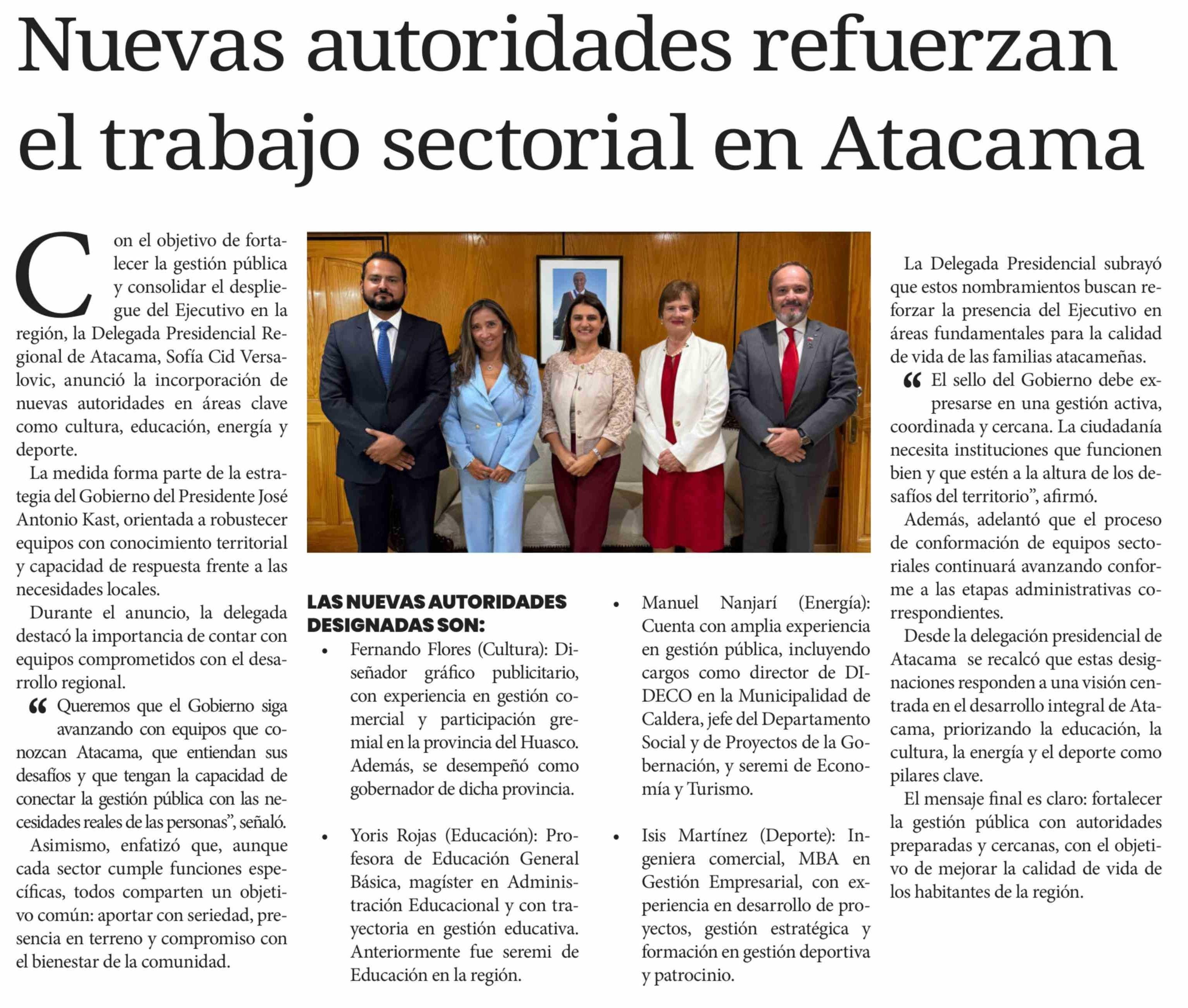 Nuevas autoridades refuerzan el trabajo sectorial en Atacama