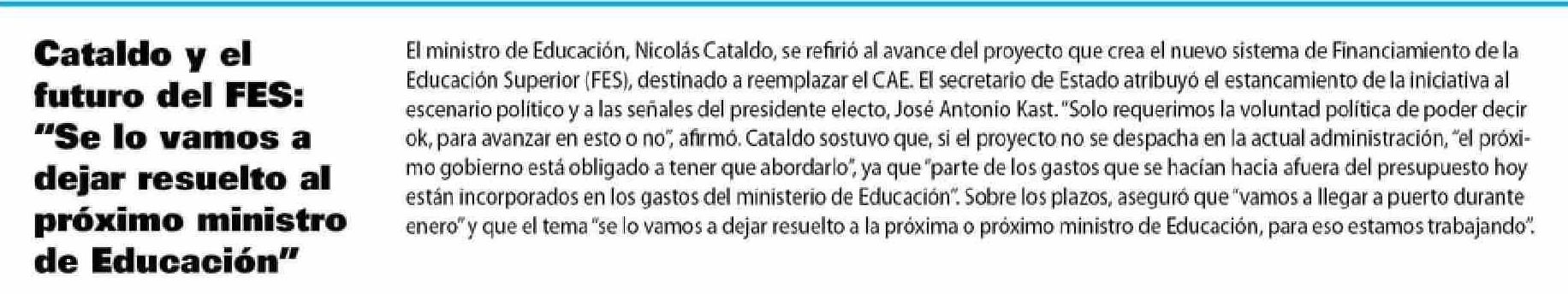 Cataldo y el futuro del FES: "Se lo vamos a dejar resuelto al próximo ministro de Educación"